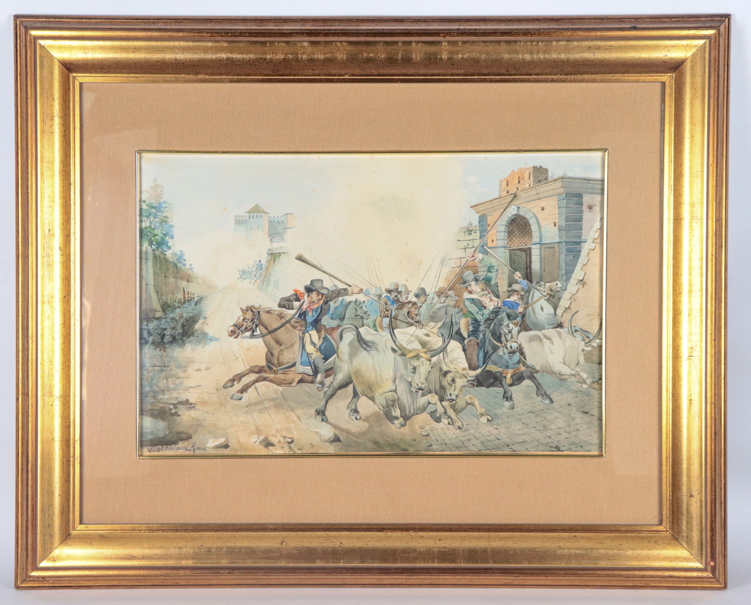 Signed and inscribed in Rome. "The Butteri Race with the Oxen."