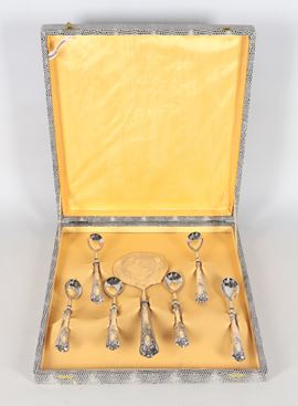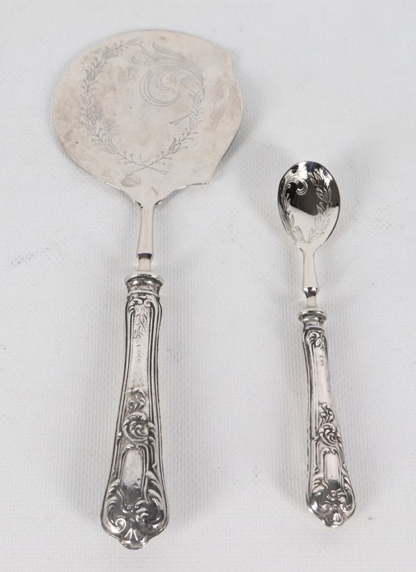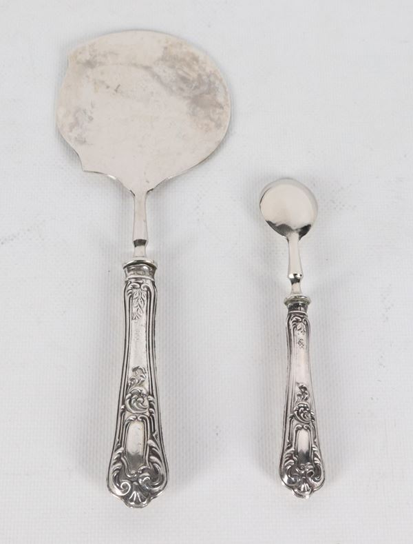Ice cream cutlery set with chiseled and embossed silver handles (7 pieces)