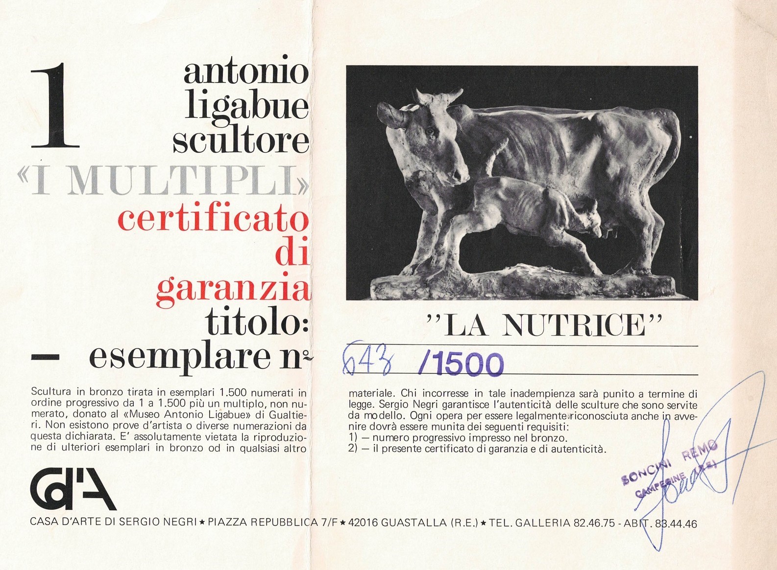 Signed. "The Nurse," a multiple bronze sculpture 643/1500. A certificate of guarantee is enclosed.
