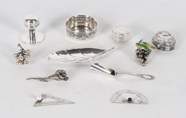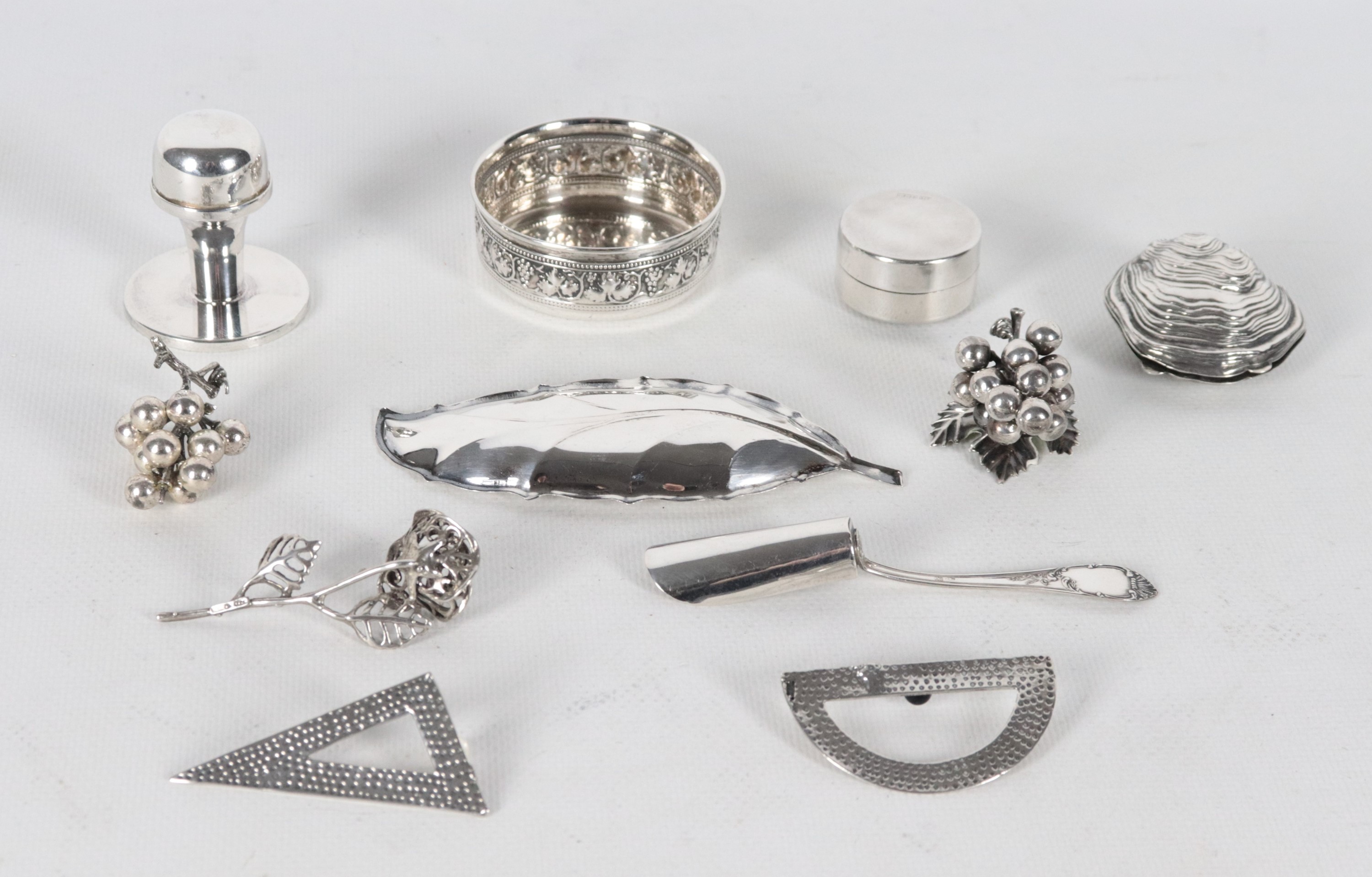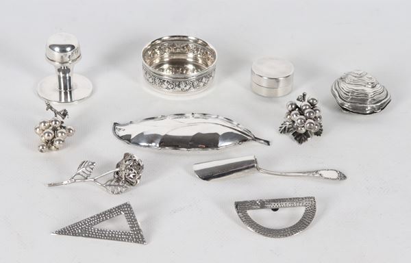 Lot of eleven small objects in chiseled and embossed silver, some with a 925 title, 170 g.