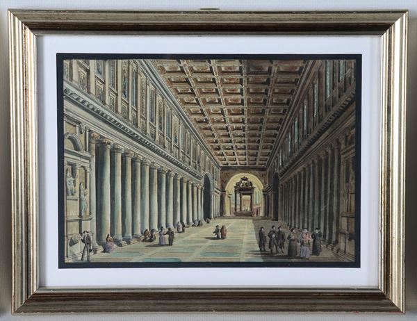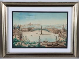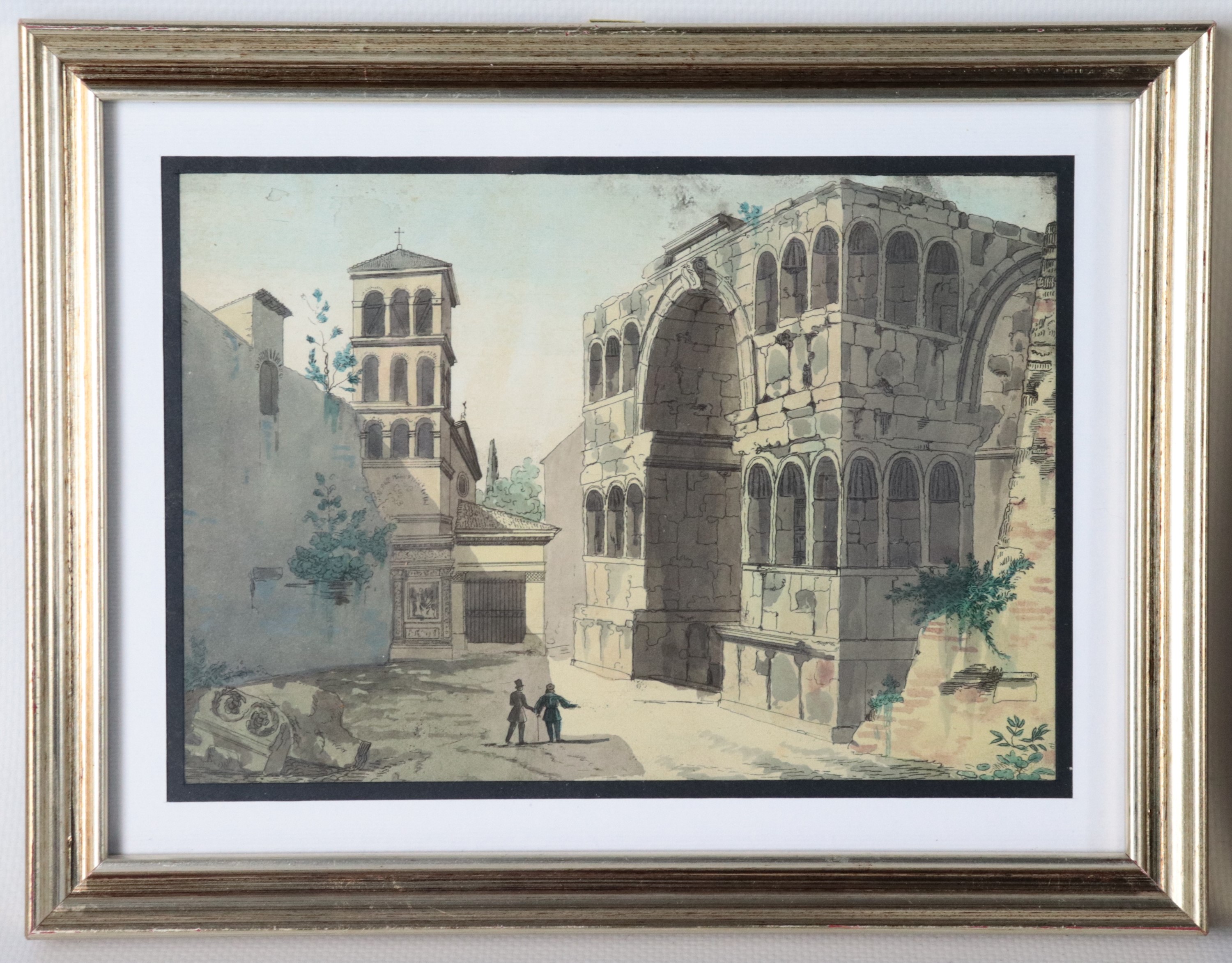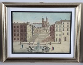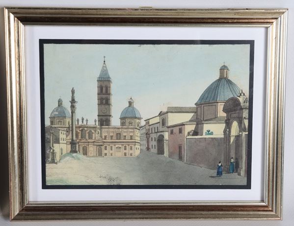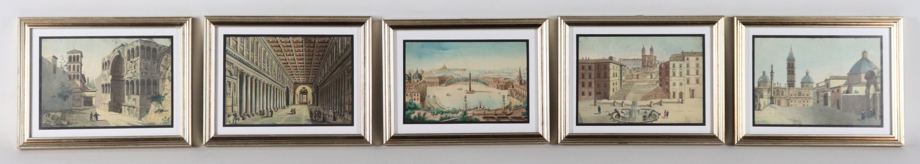 Lot of five small antique watercolor drawings "Views of Rome"