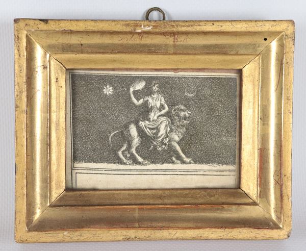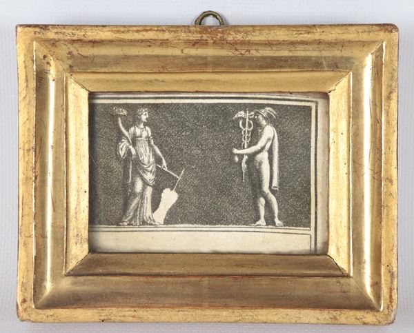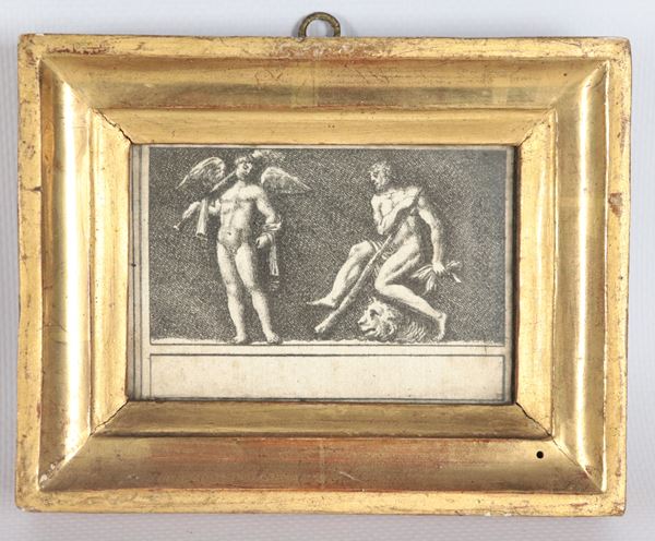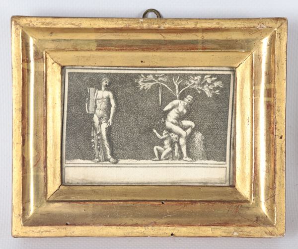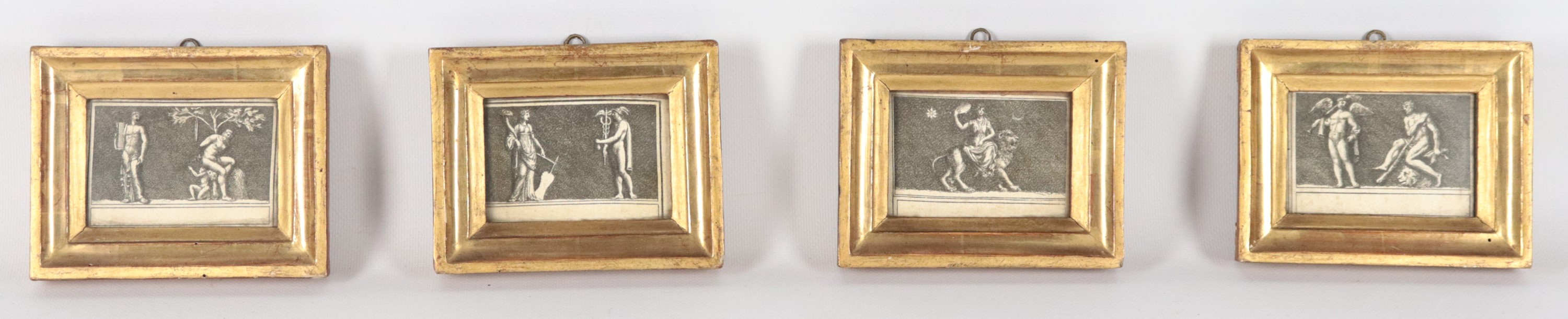 Lot of four small antique engravings depicting "Mythological Scenes"