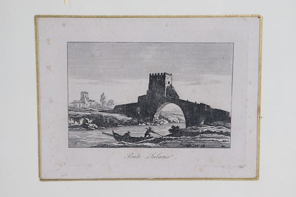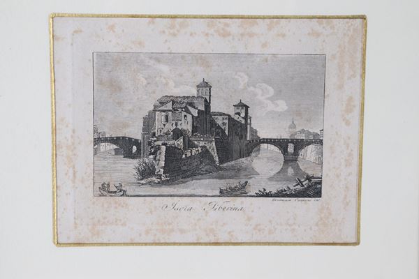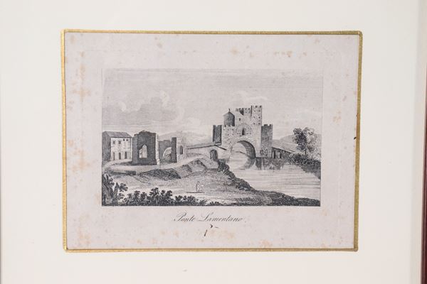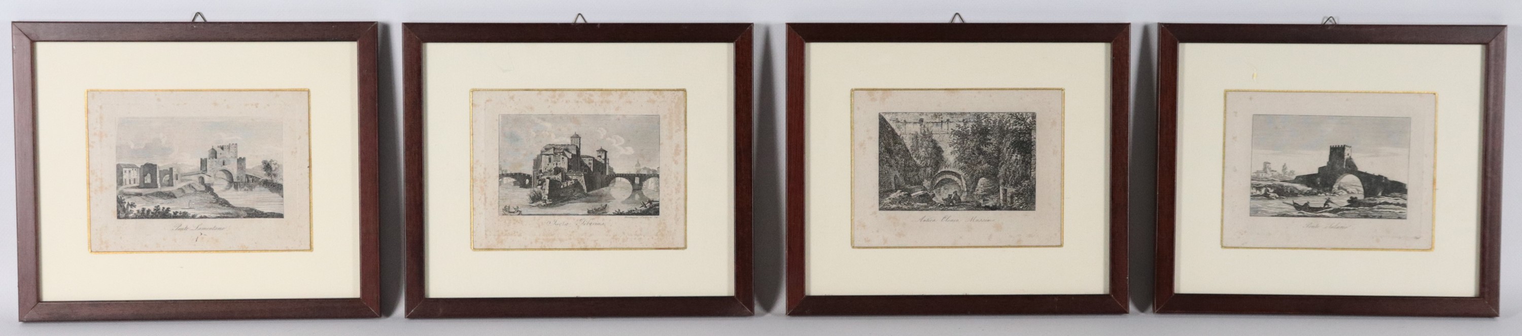 Lot of four small antique engravings depicting "Views of Vanished Rome"