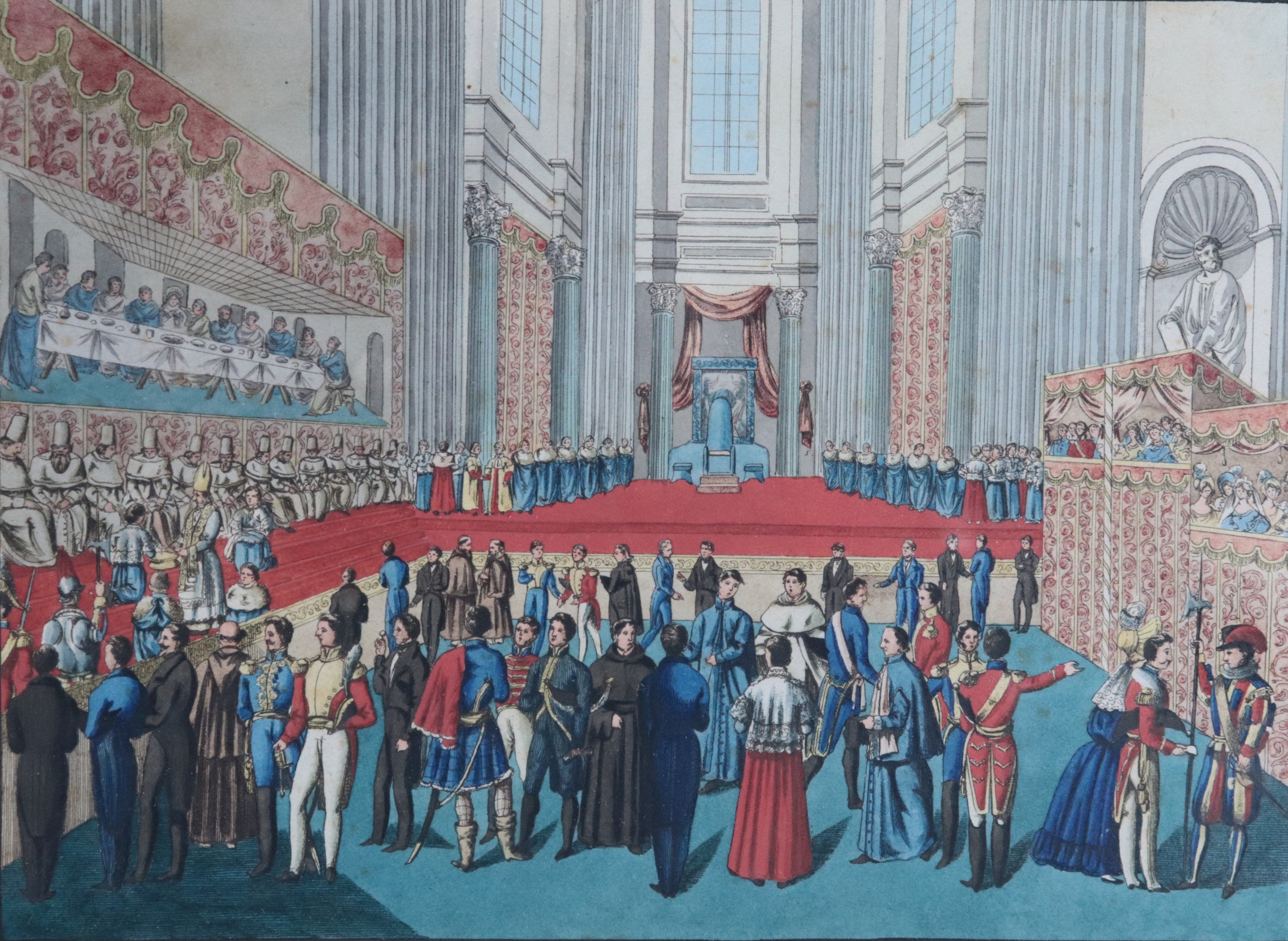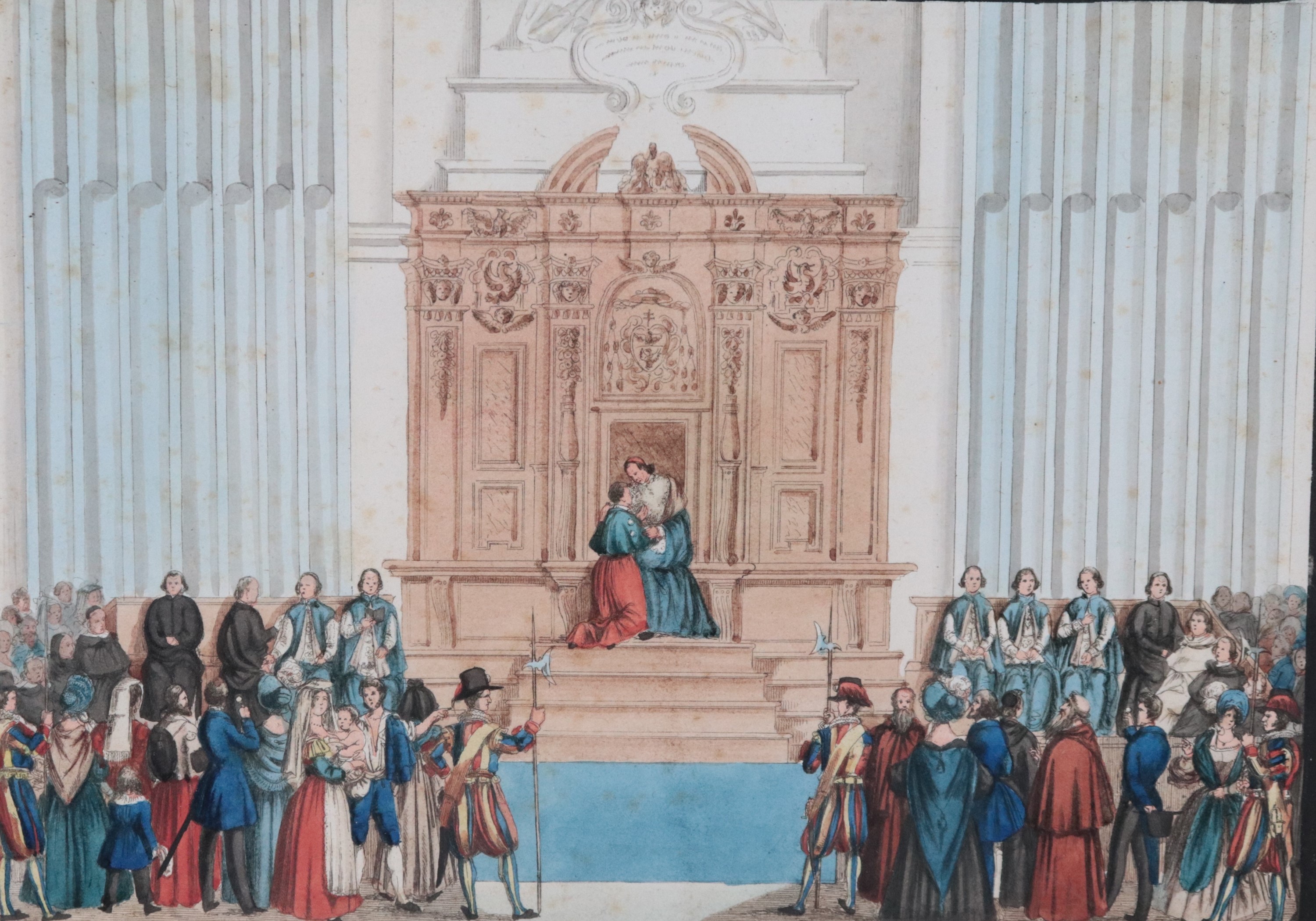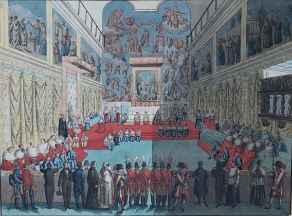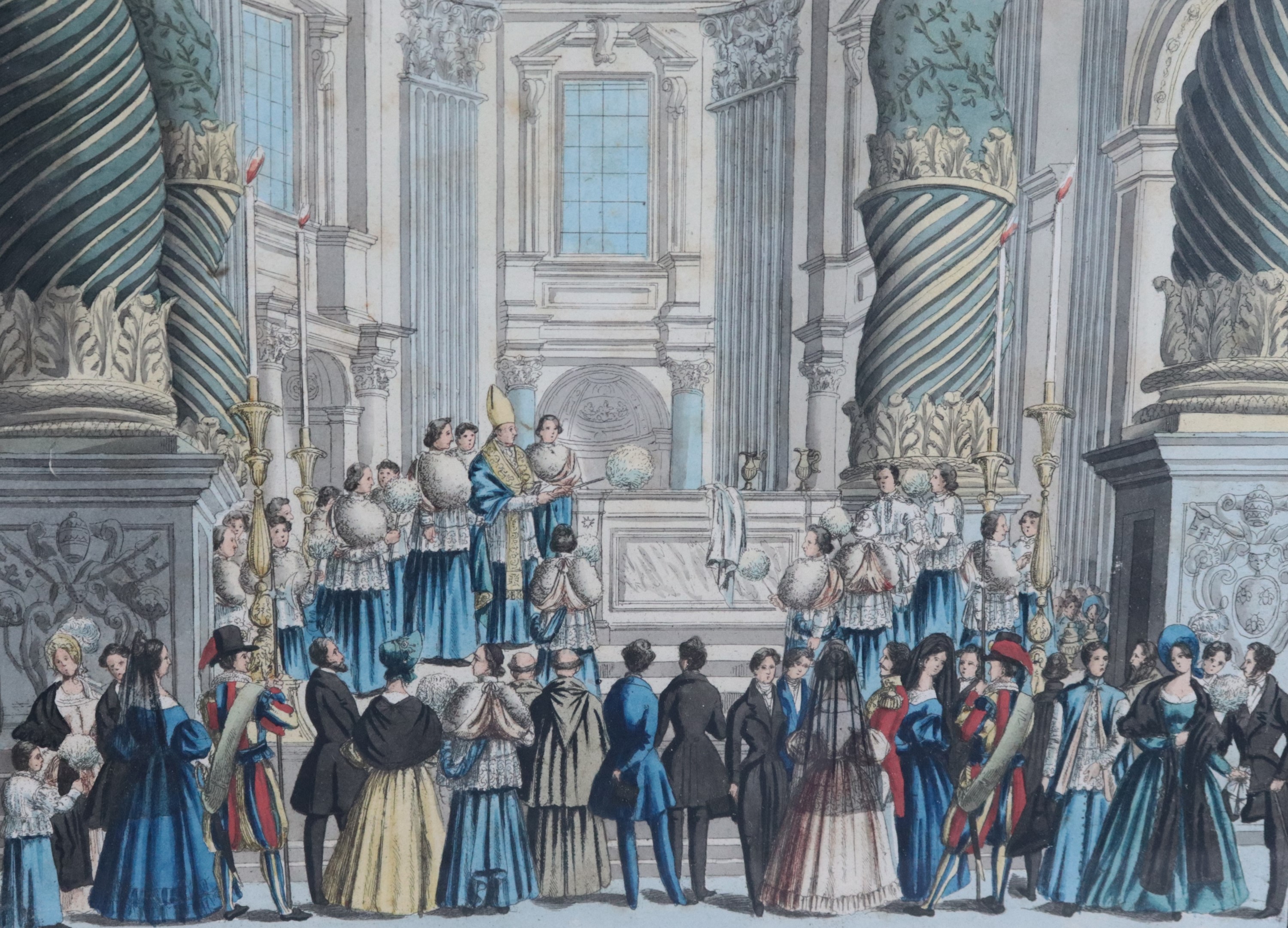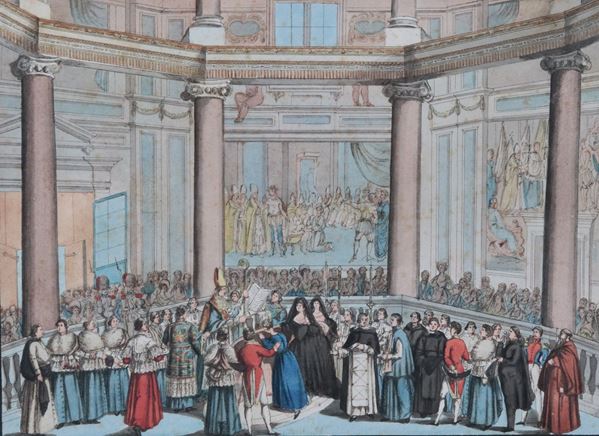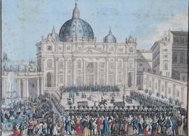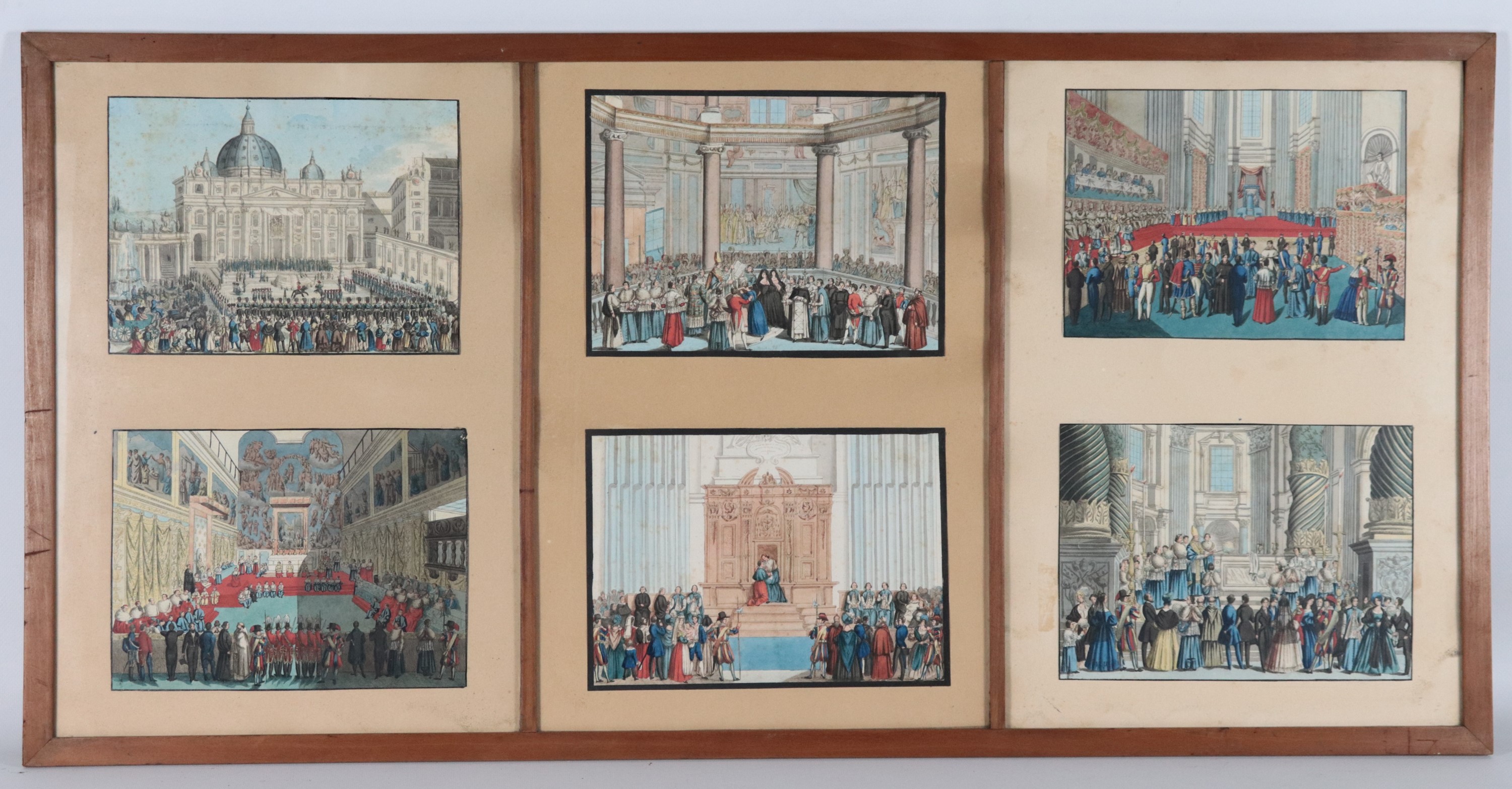 Lot of six ancient Roman watercolor drawings depicting "Ceremonies in St. Peter's Basilica"