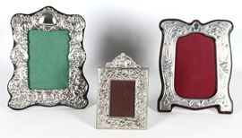 Lot of three engraved and embossed silver picture frames, various shapes and sizes