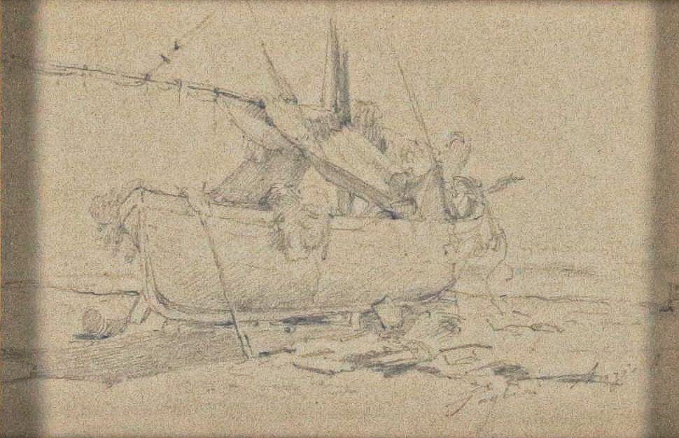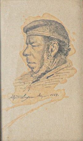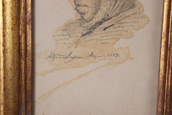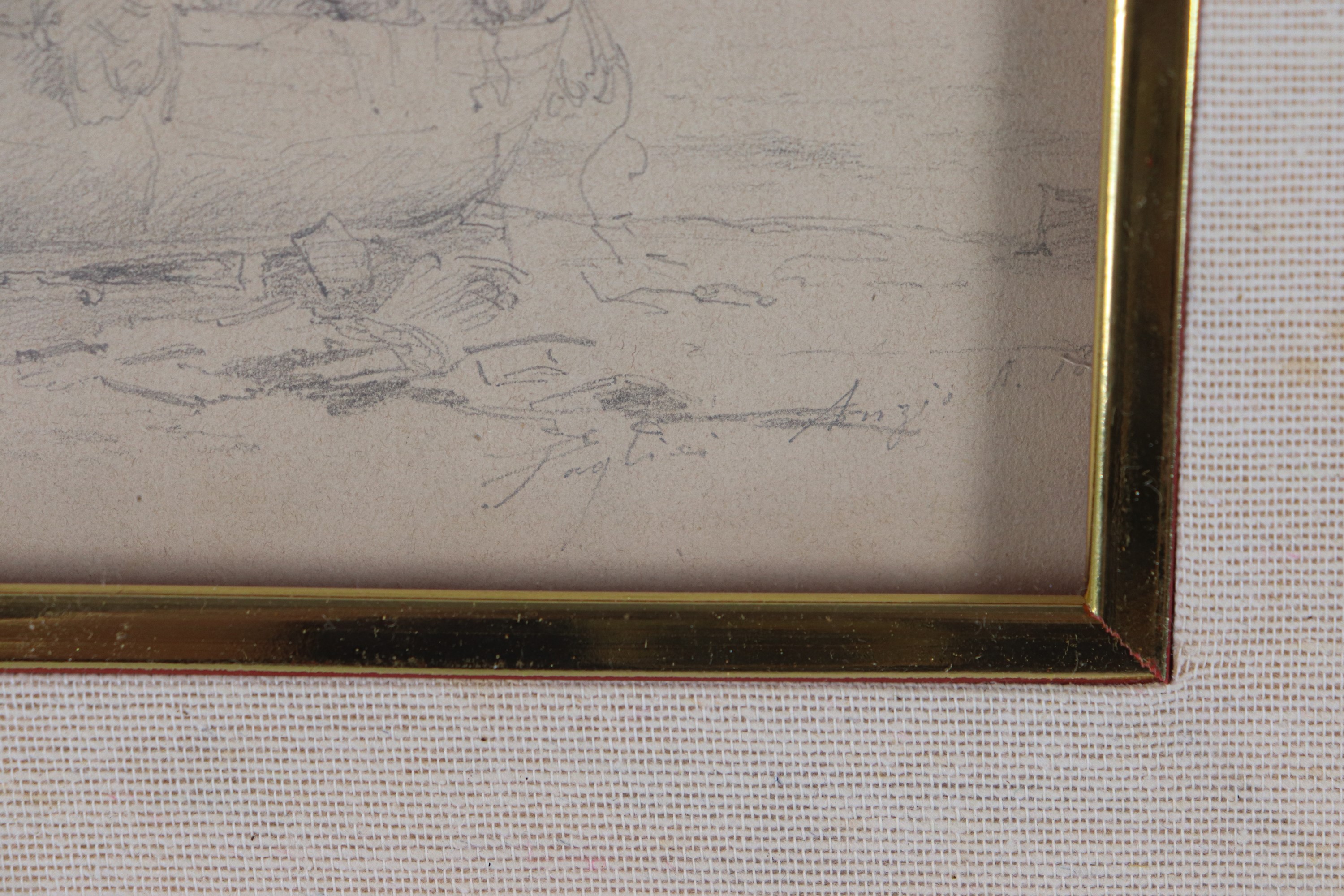 Lot of three small antique pencil drawings of various sizes: "Old Man with Beard," "Fisherman's Face," and "Boat [..]