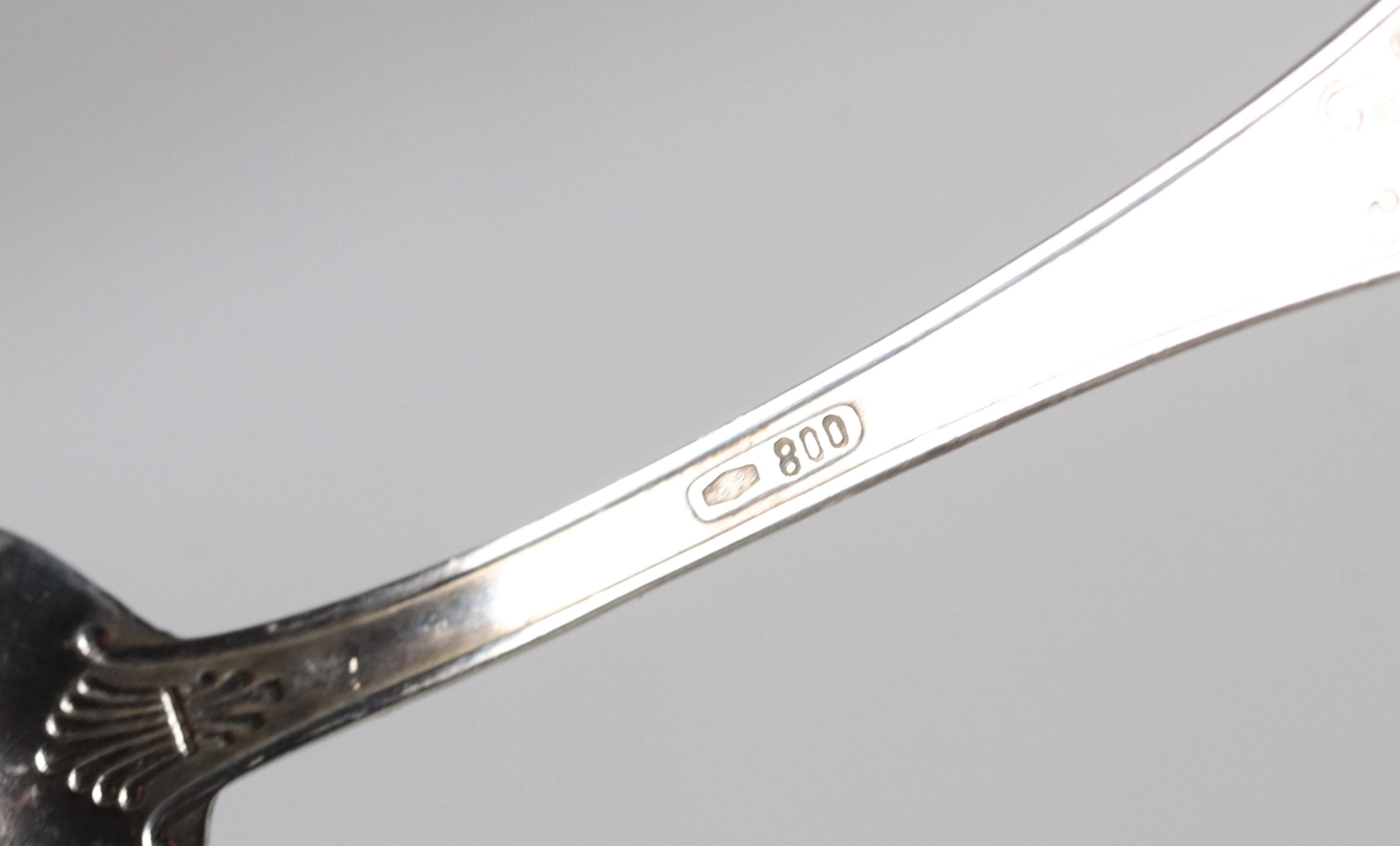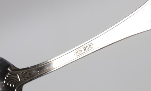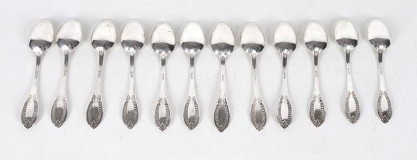 Lot of twelve silver coffee spoons, chiseled and embossed with Empire motifs, 130g