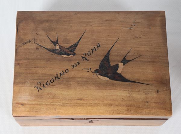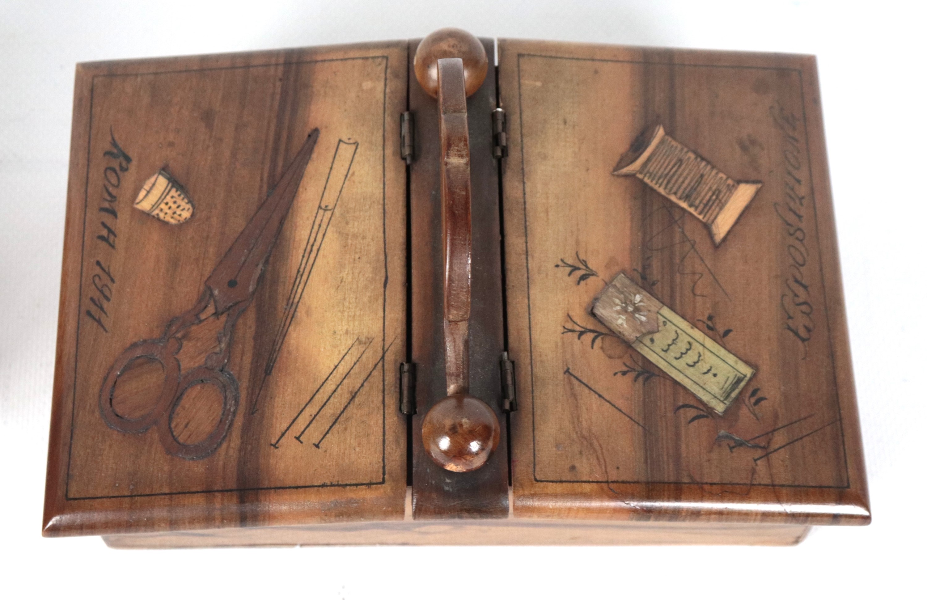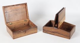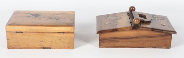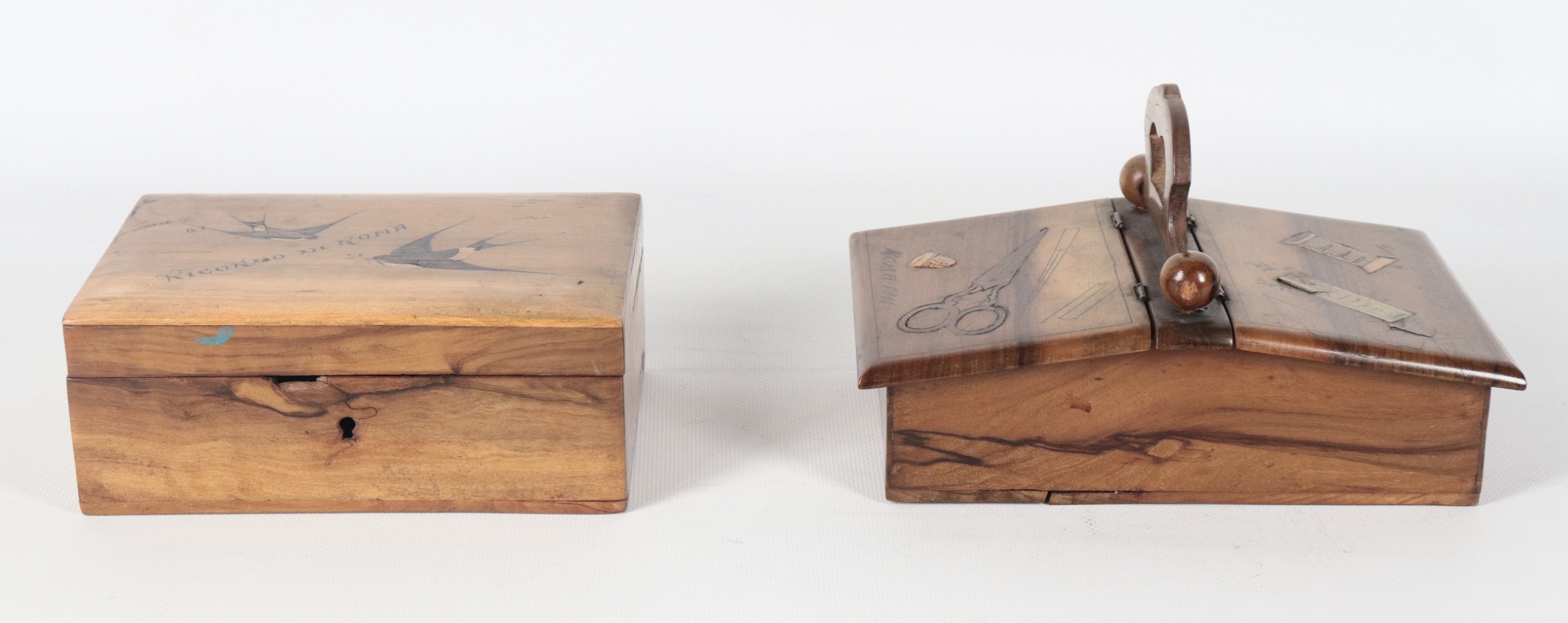 Lot of two antique walnut sewing boxes with inlays