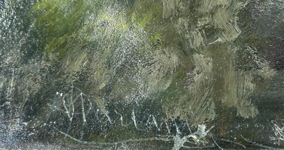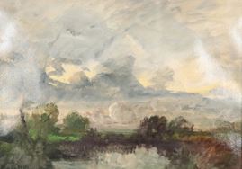 small oil painting on canvasgilded wooden frame and brown velvet passepartout, 24 x 34 cm.