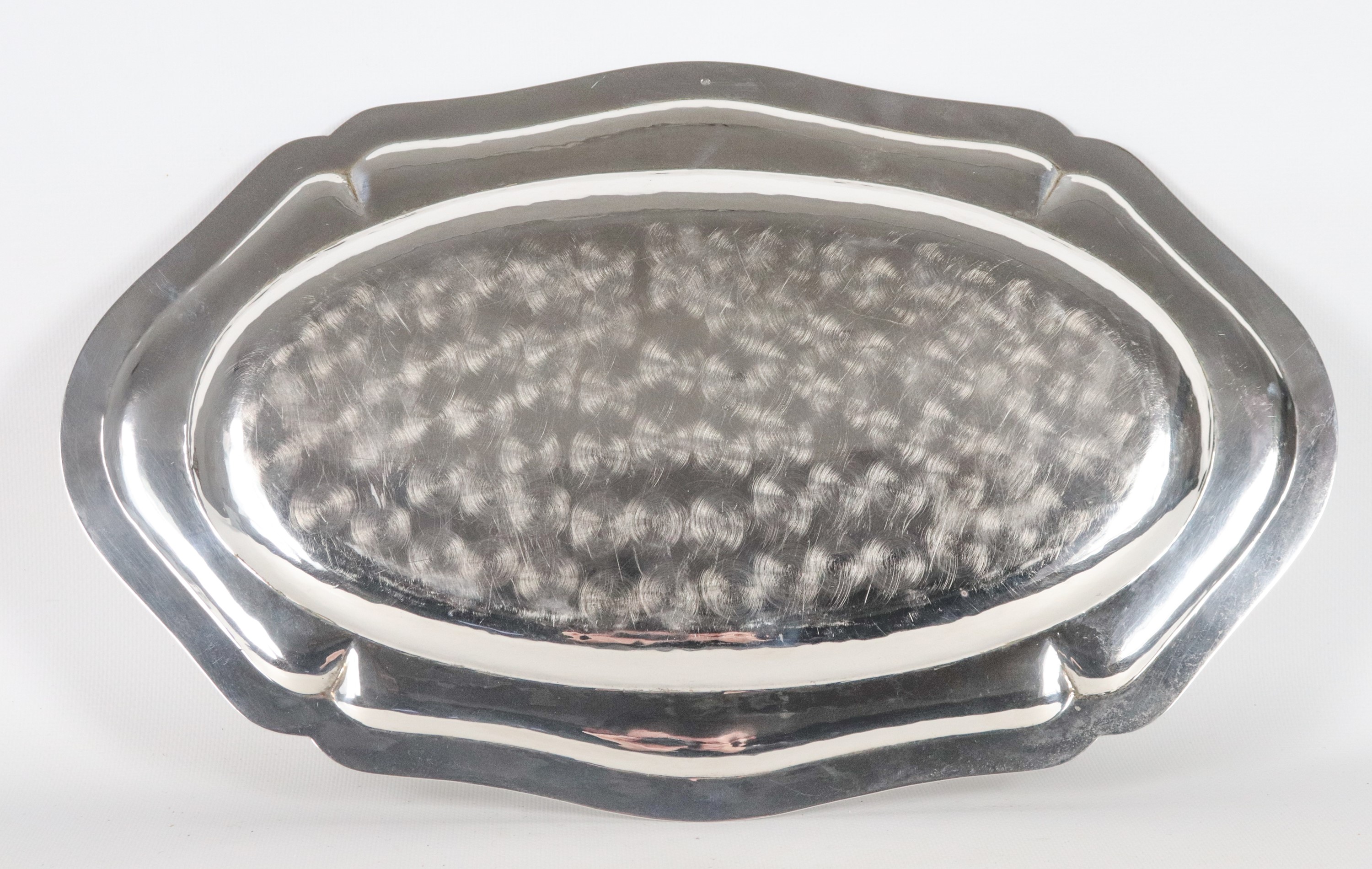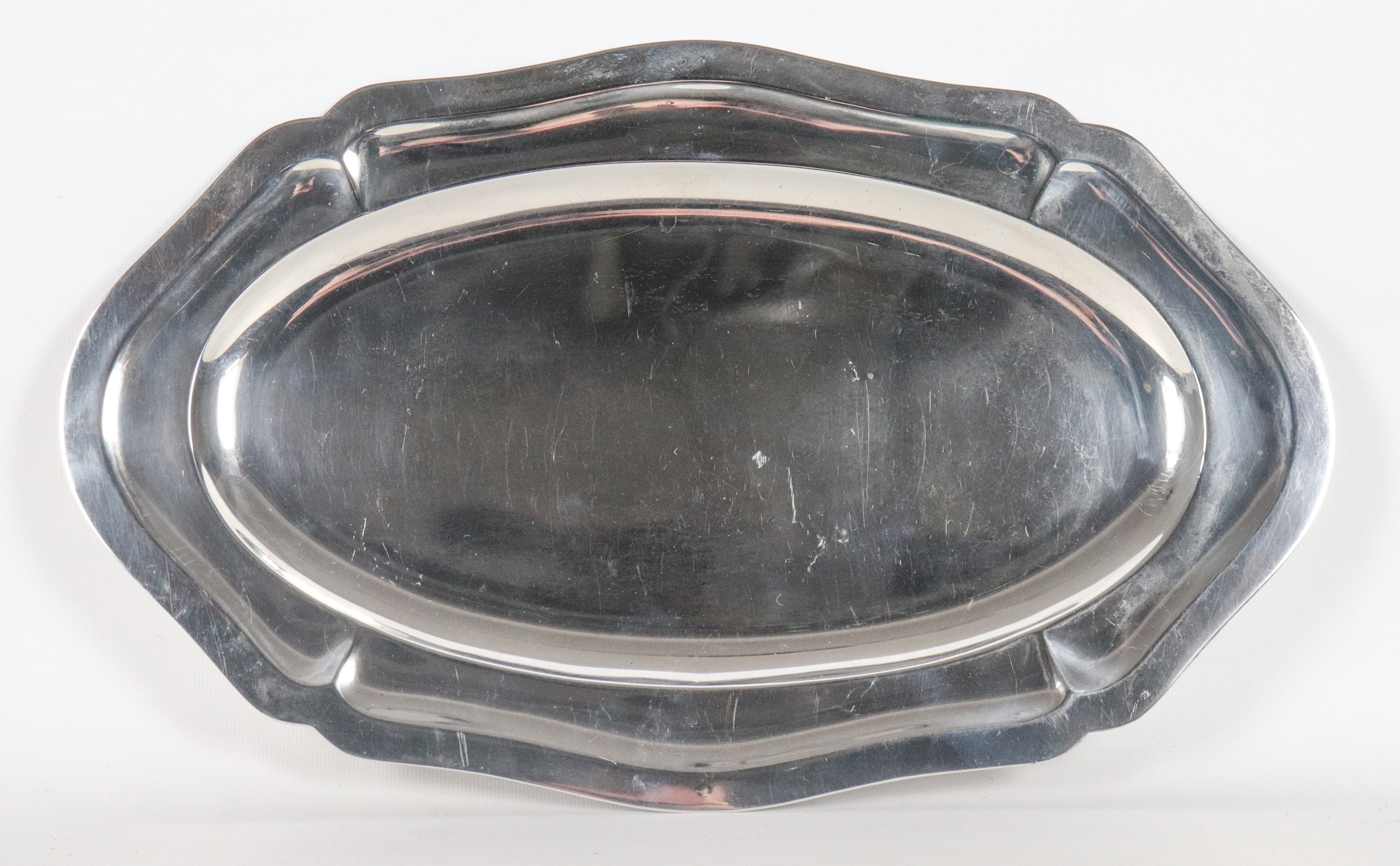 Oval silver serving dish with shaped edge, 610g