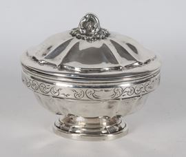 Oval sugar bowl in chiseled and embossed silver with Louis XV motifs, 310g