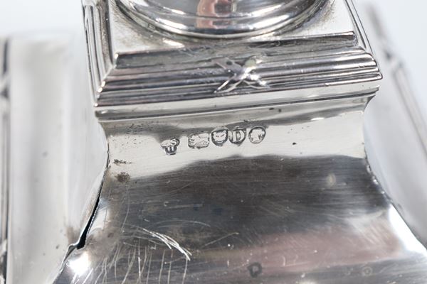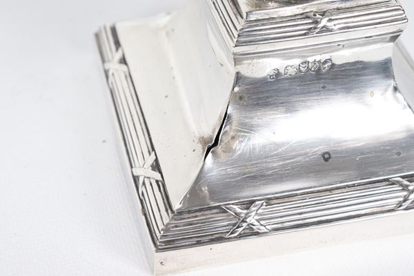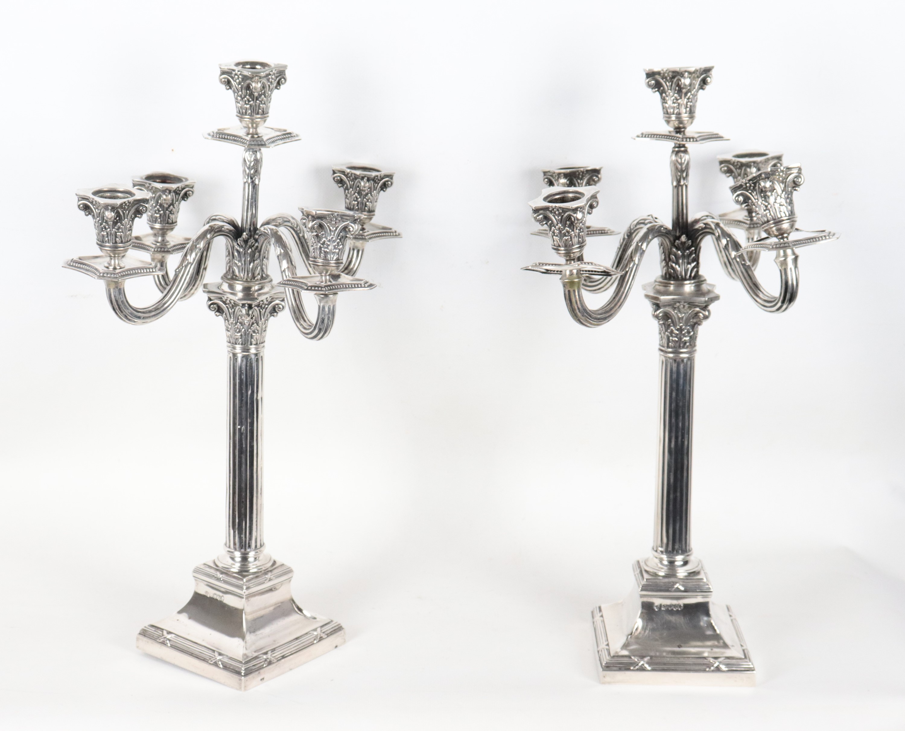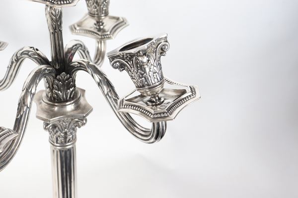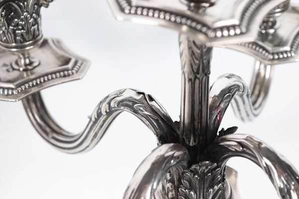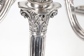 Pair of antique Queen Victoria silver candelabra, chiseled and embossed with Empire motifs, 1700g