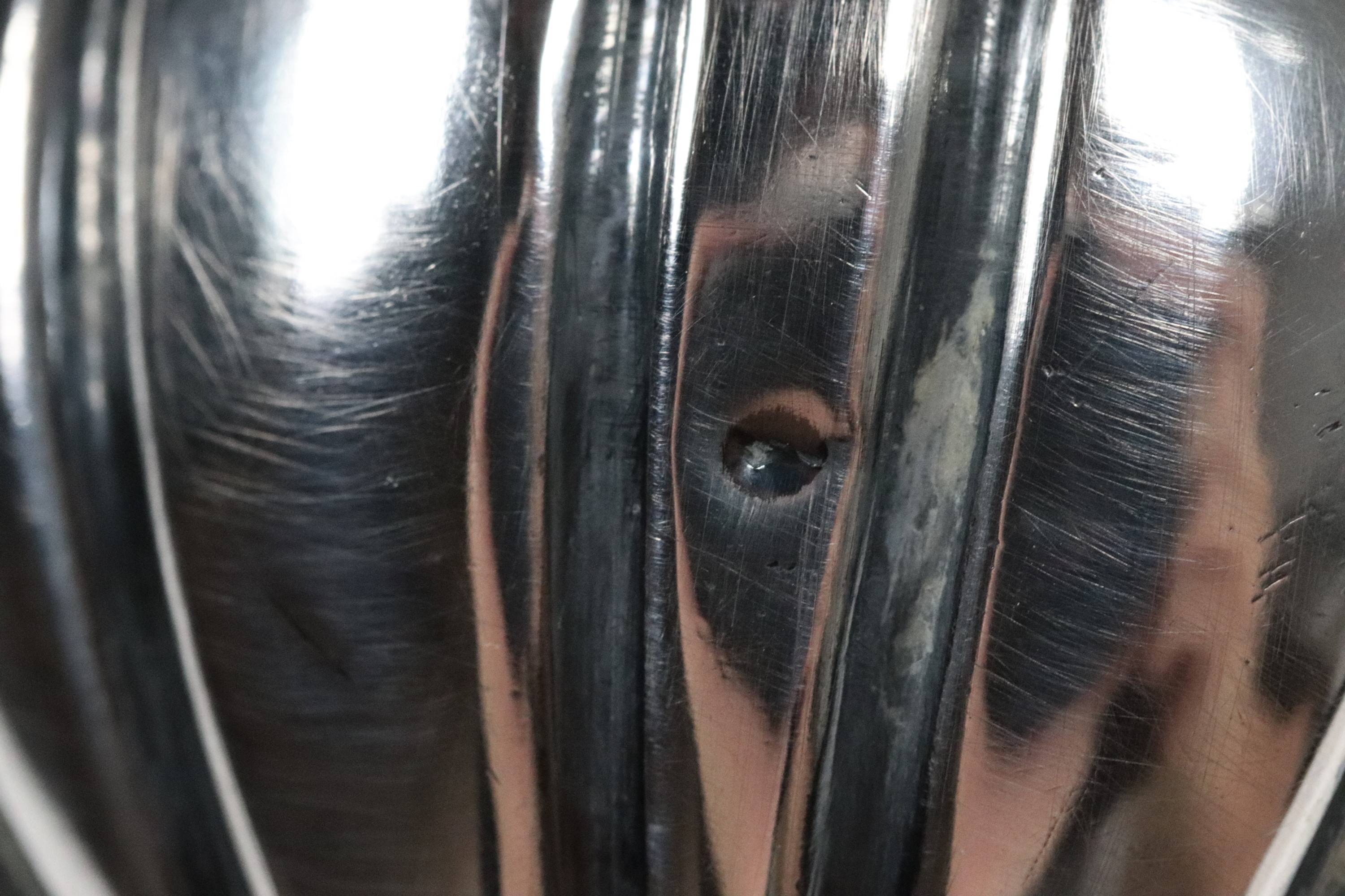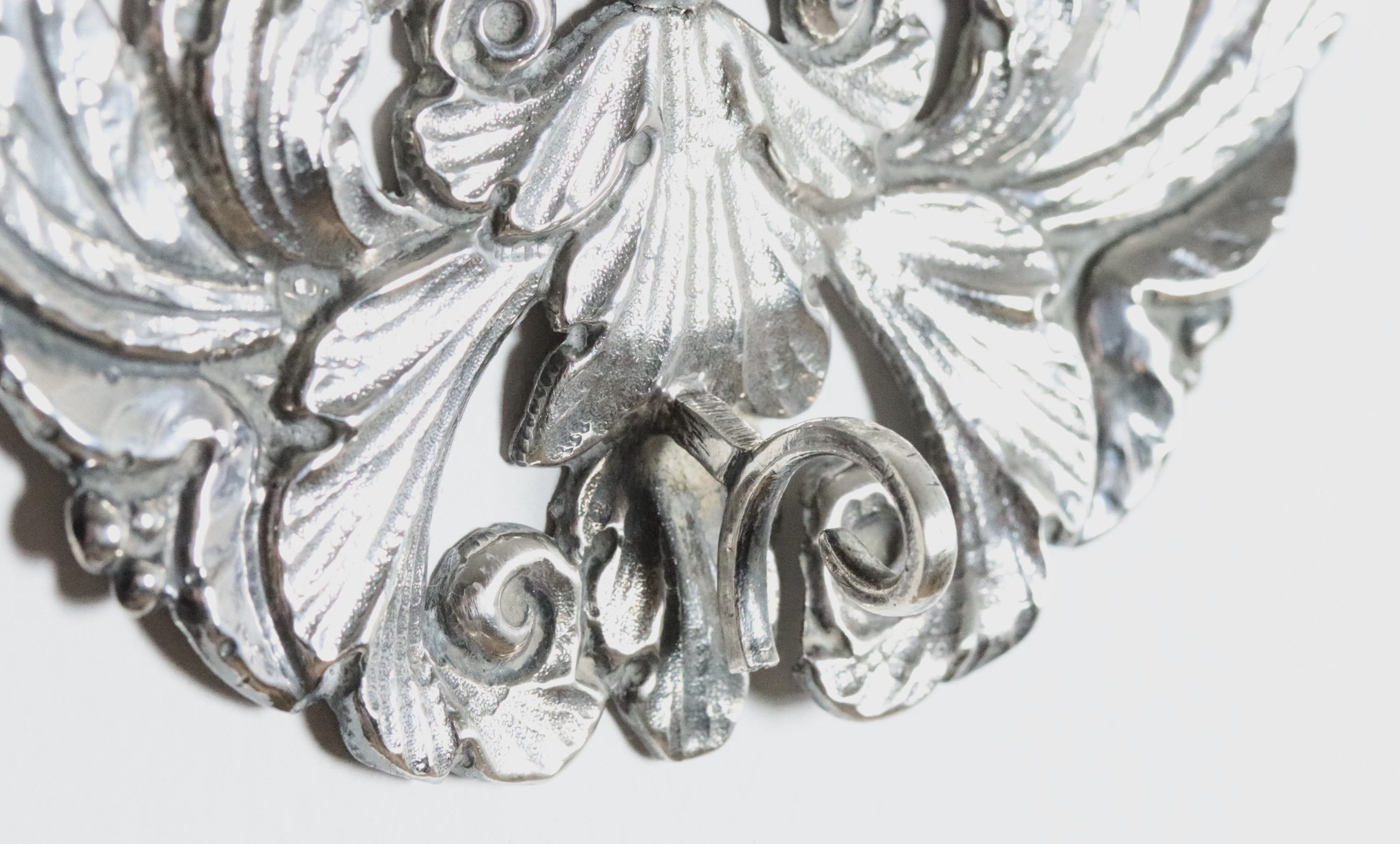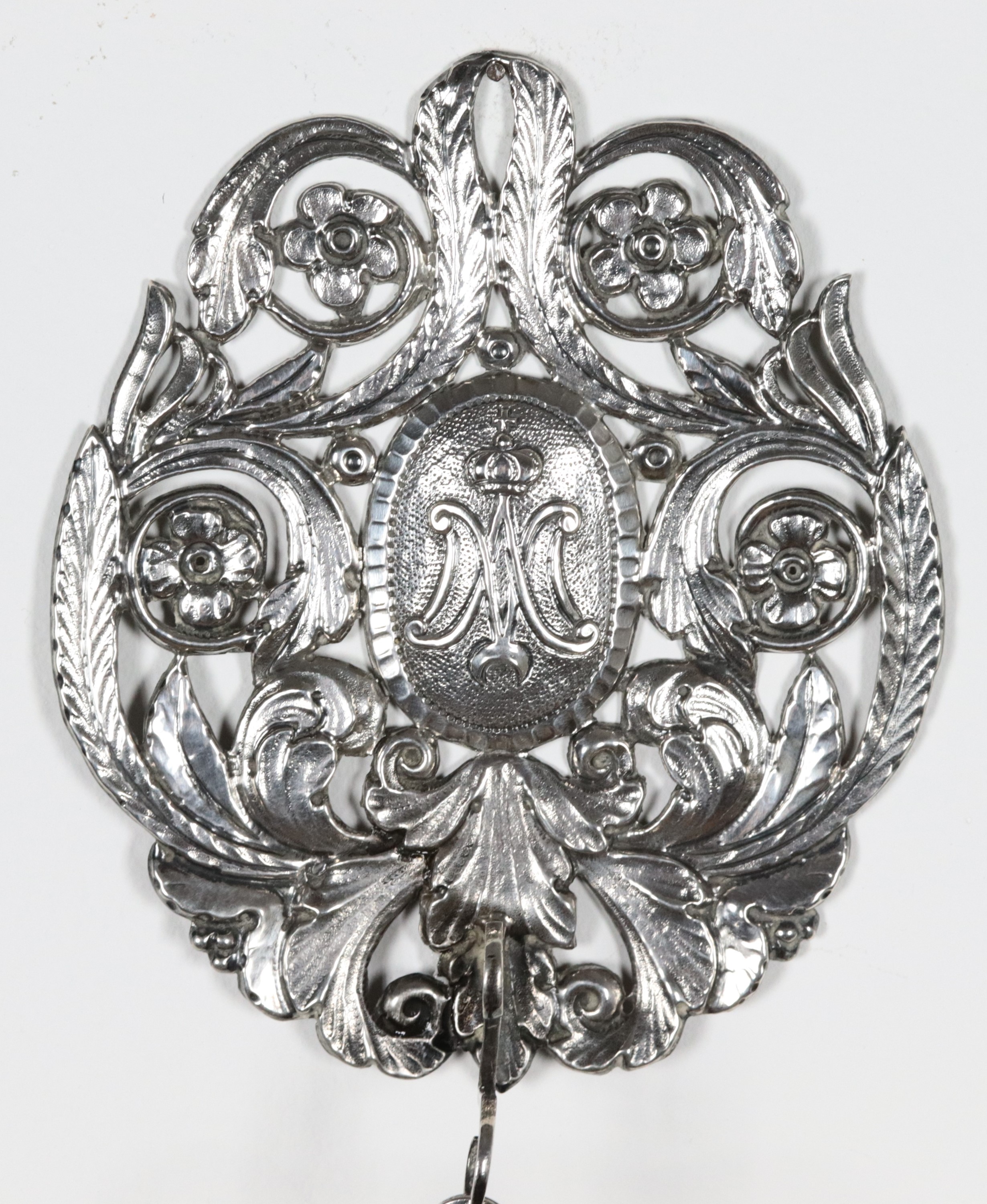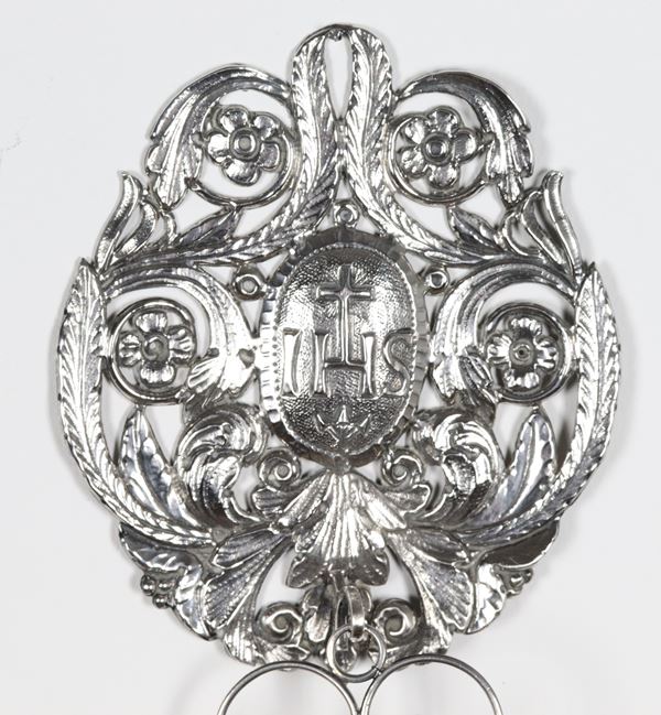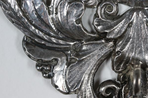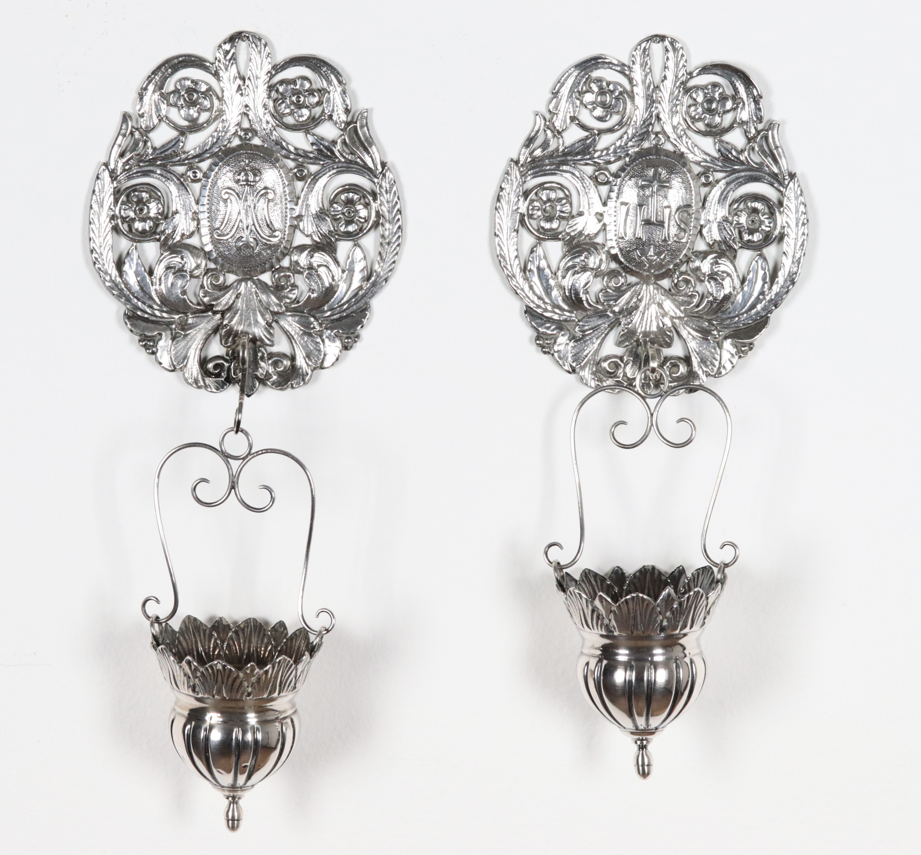 Pair of holy water stoups in chiseled and embossed silver, 205g