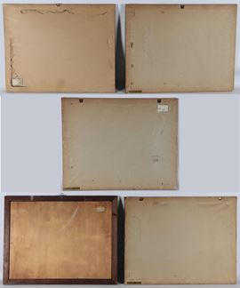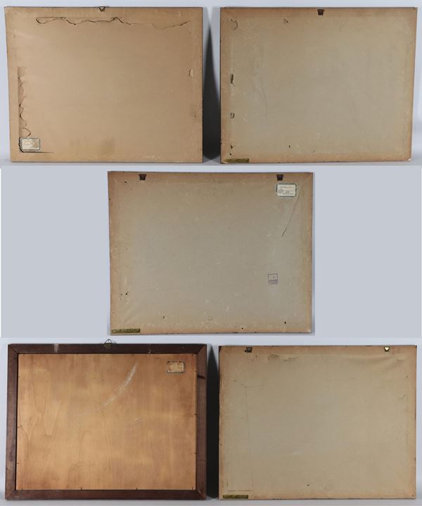 lot of five large antique prints on paperWalnut frames. Maximum size 33 x 44 cm.