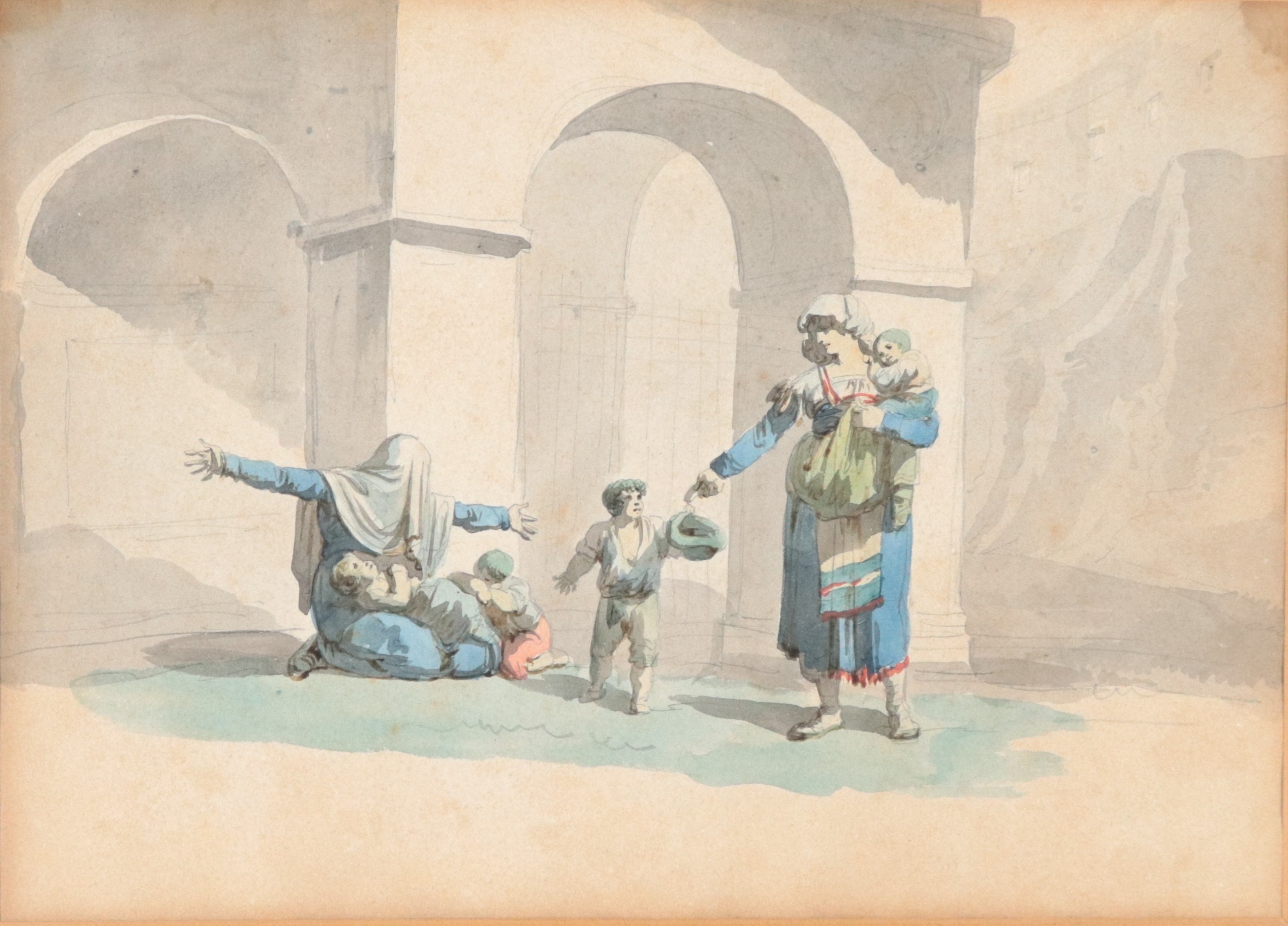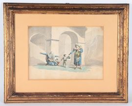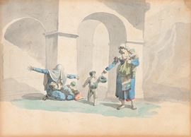 small watercolor on paperThe work participated in the Bartolomeo Pinelli Exhibition in Rome - Palazzo Braschi 1956 n. 92. Gilded wooden frame and passepartout, 20 x 27 cm.