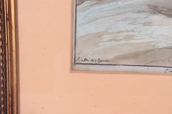 watercolor drawing on papergold and black lacquered frame, 20 x 28 cm.