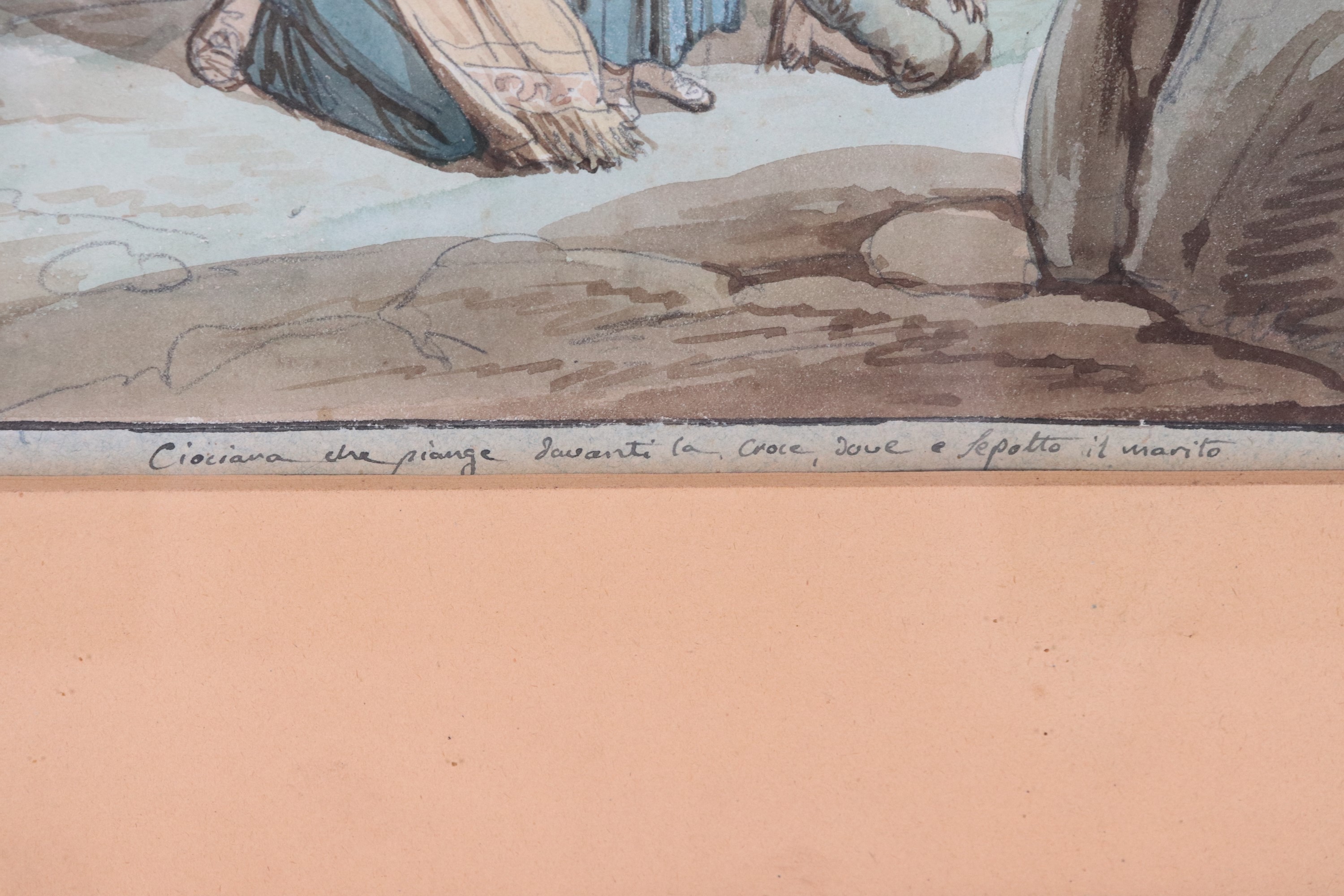Signed and dated 1818. "Ciociara woman weeping before her husband's tomb."