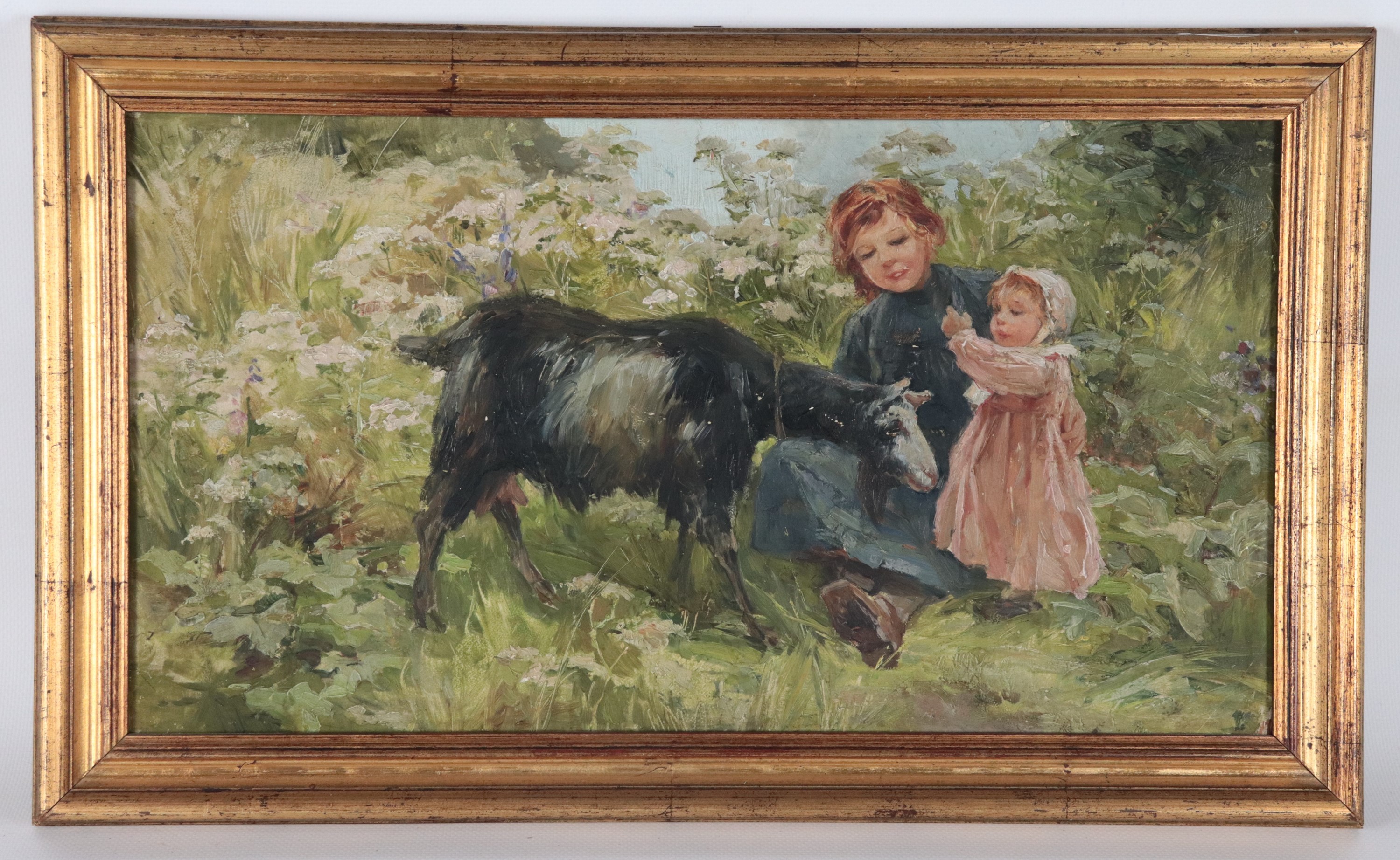 small oil painting on panelgilded wooden frame, 24 x 43 cm.