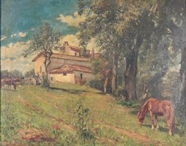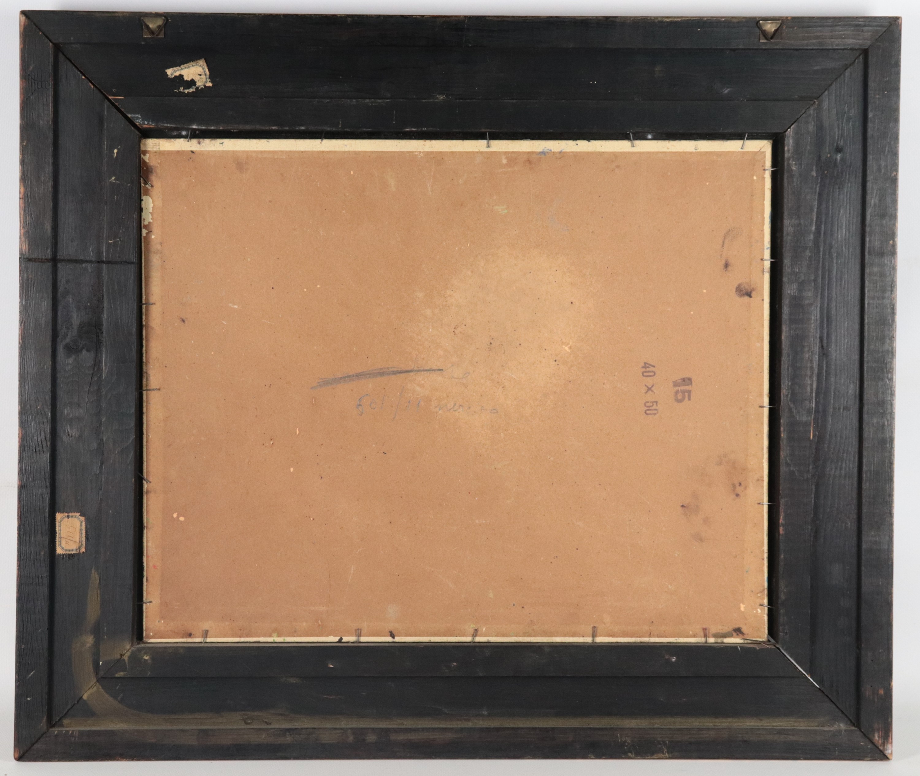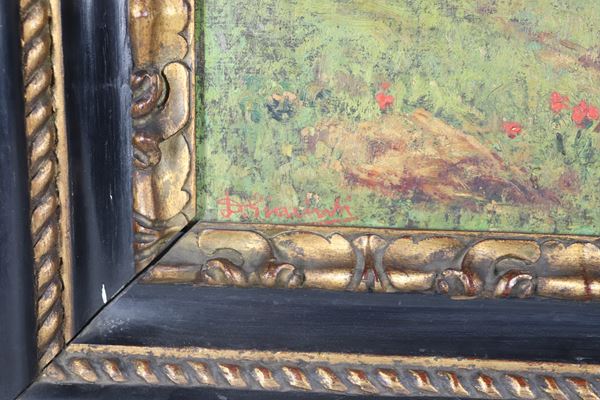 oil painting on pressed cardboardebonized and gilded wooden frame, 40 x 50 cm.