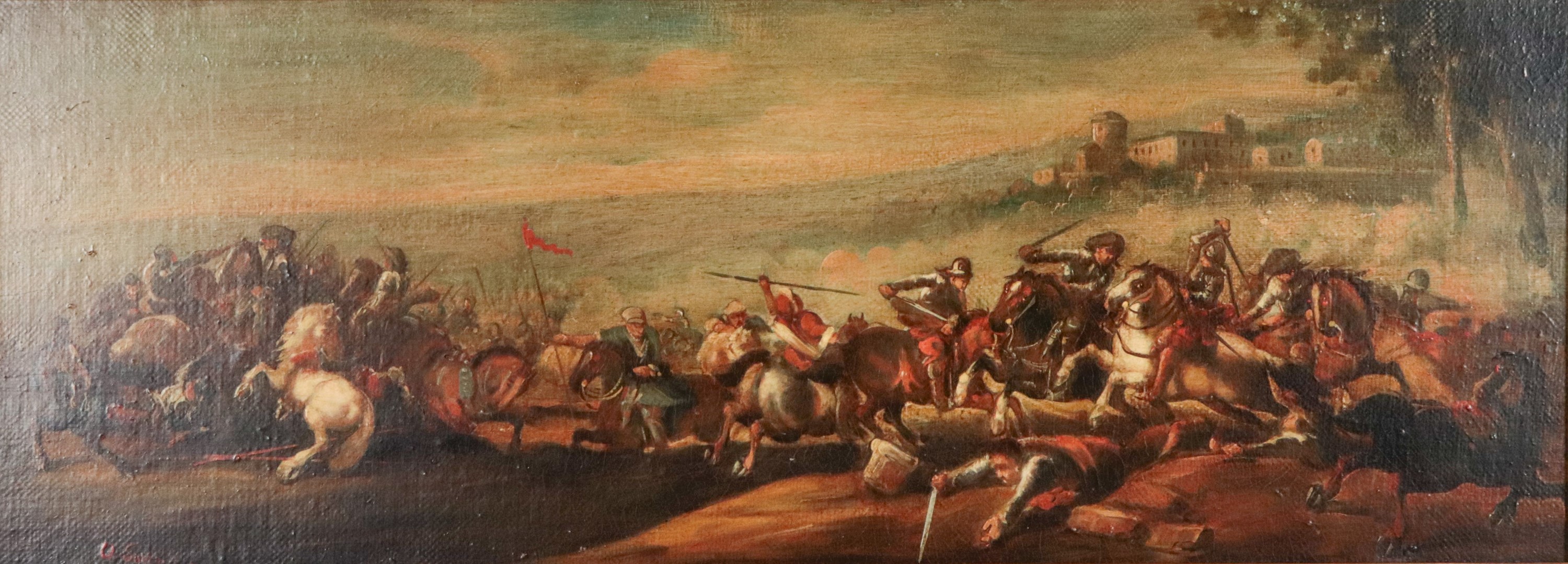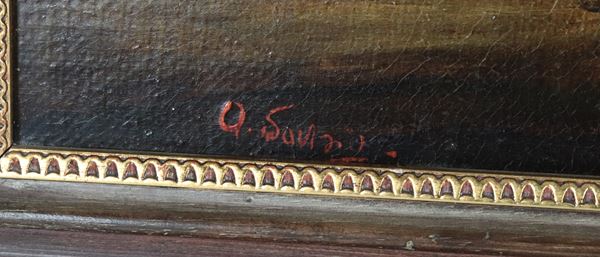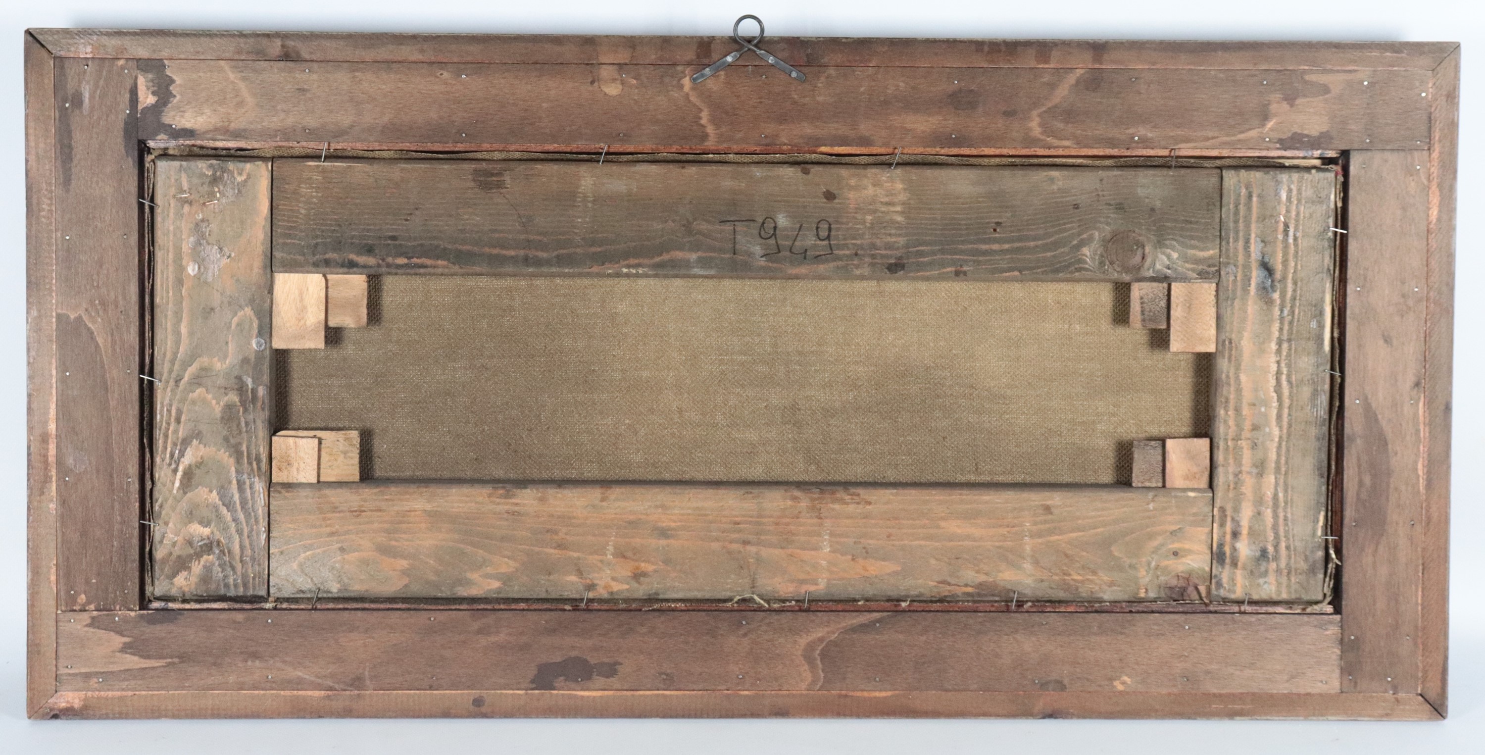 oil painting on canvaswalnut wood frame, 30 x 80 cm.