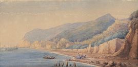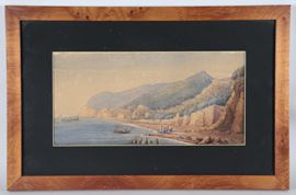 small watercolor on paper of excellent pictorial executionwalnut frame and black passepartout, 16.5 x 33.5 cm.
