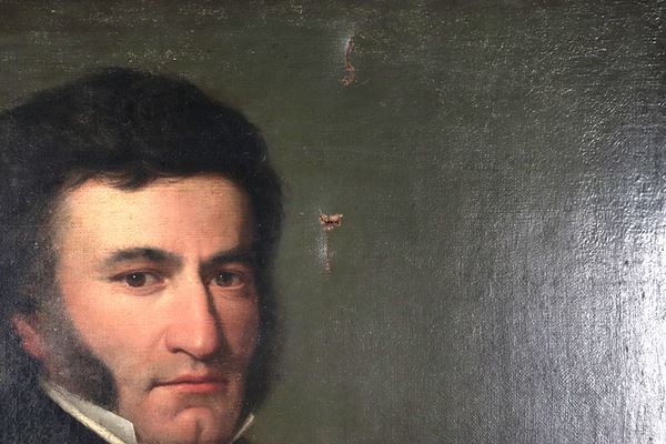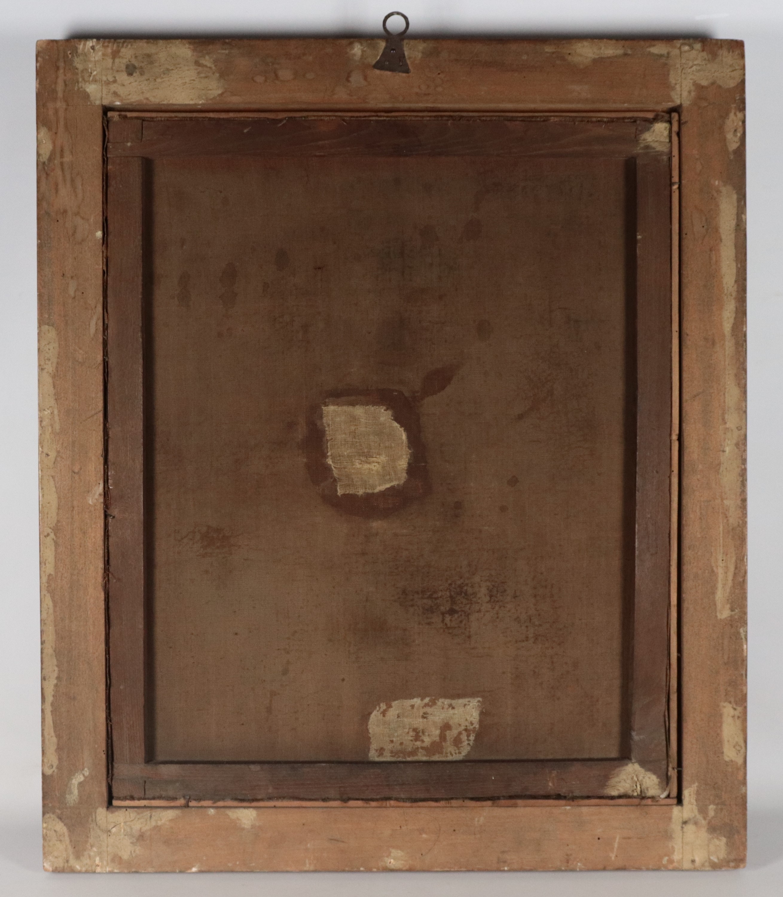 oil painting on canvasDefects on the canvas. Period frame in gilded and carved wood, 76 x 61 cm.