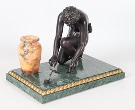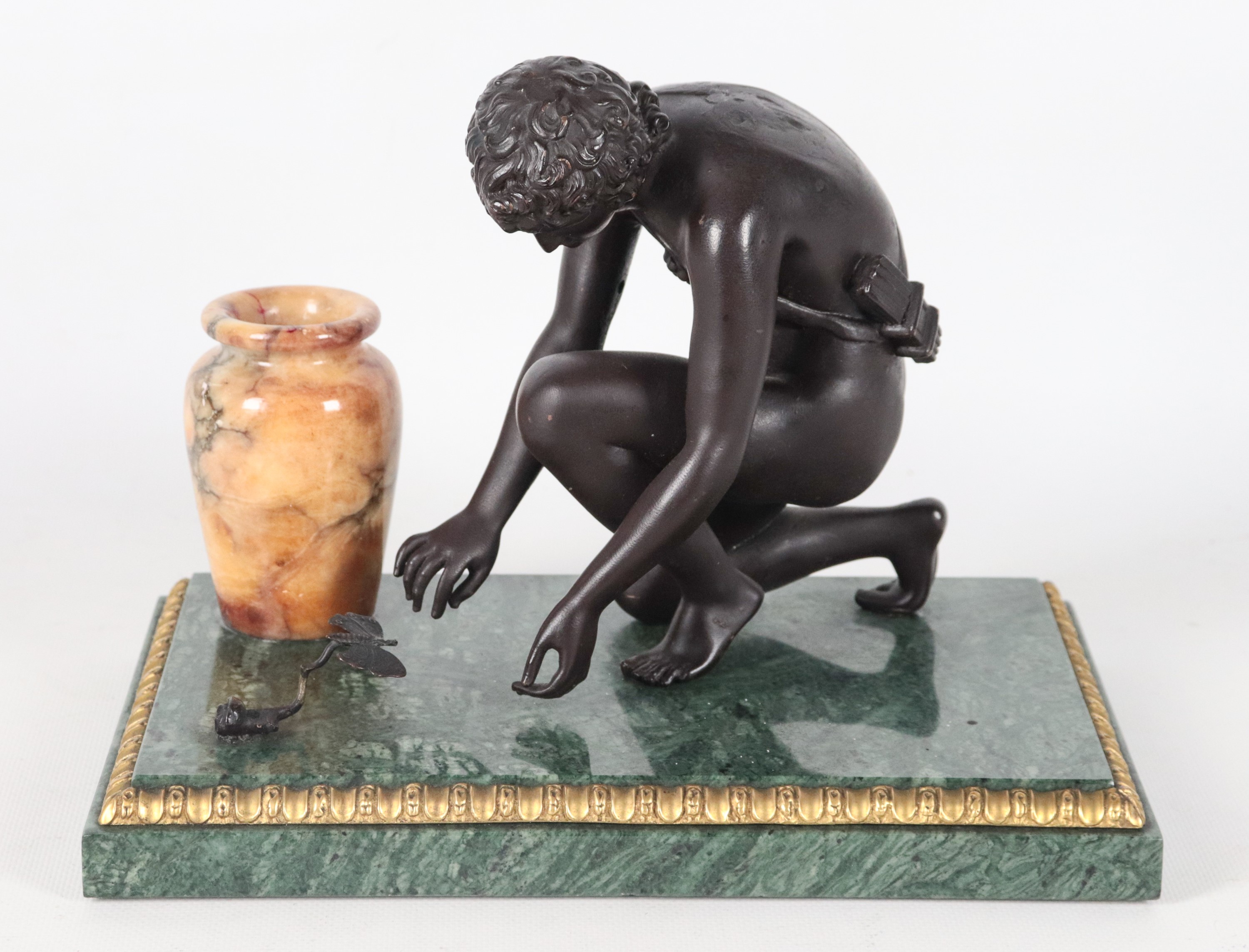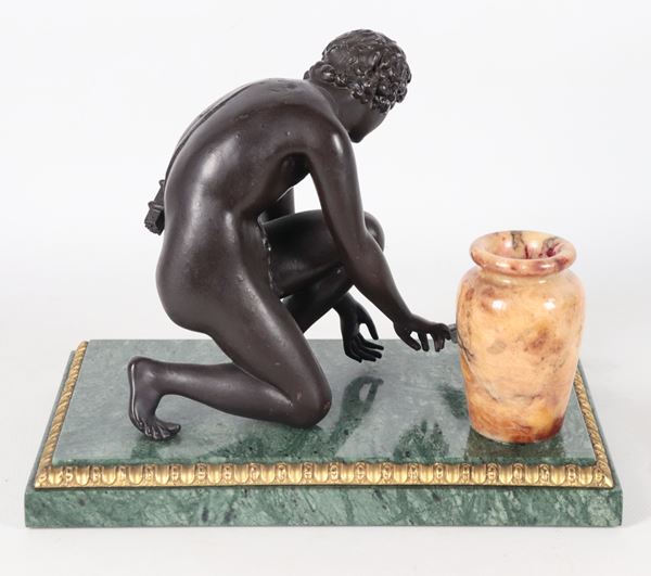 "Athlete with amphora", neoclassical style group in bronze and marble, rectangular base in Alpine green with gilded and chiseled bronze [..]