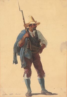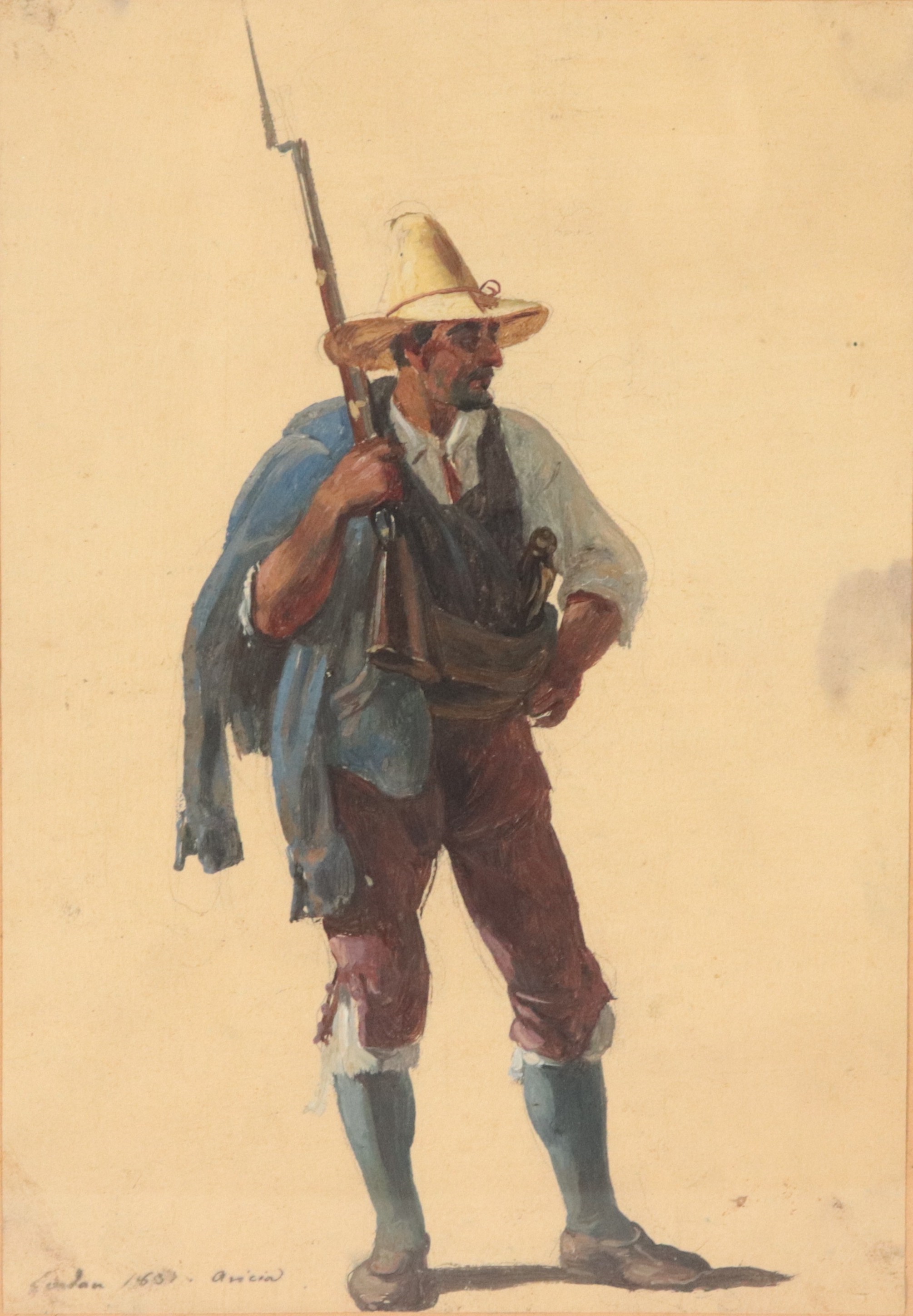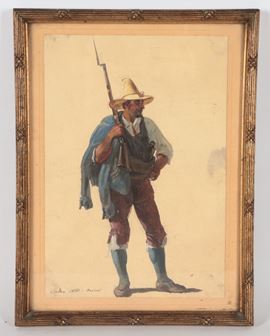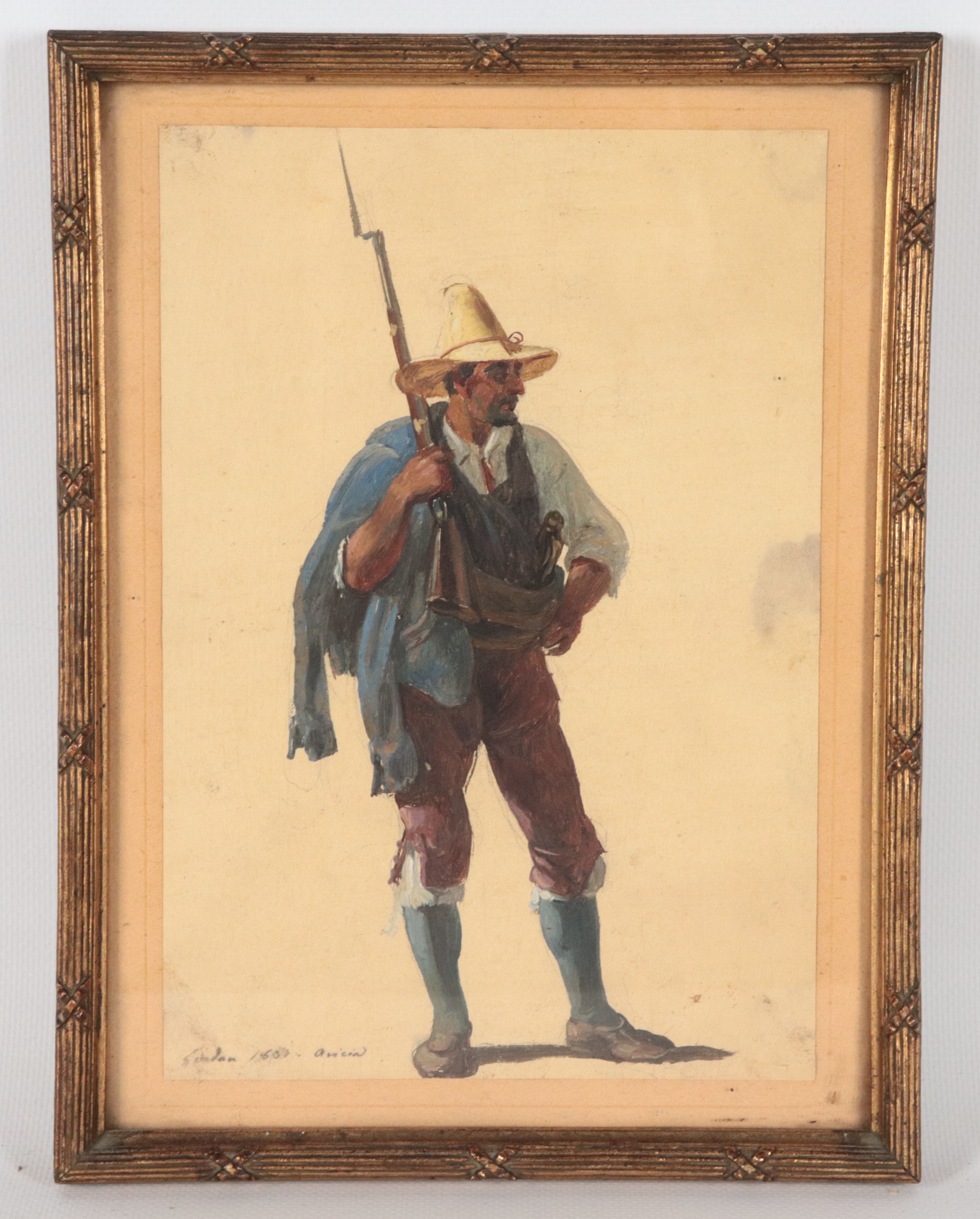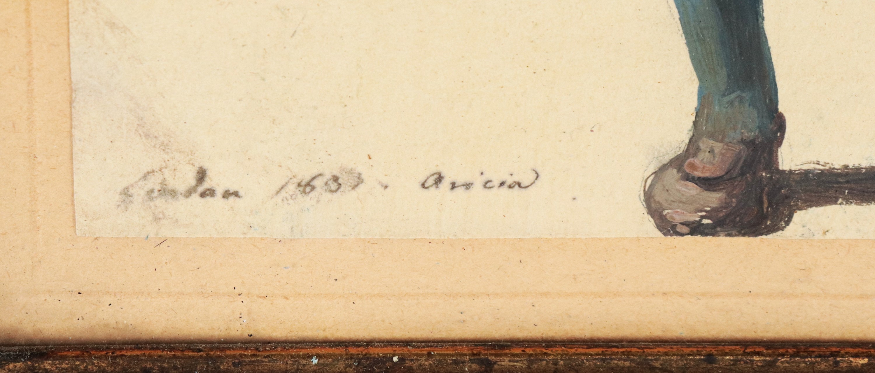 old small watercolor drawing on papergilded wooden frame, 22.5 x 15.5 cm.