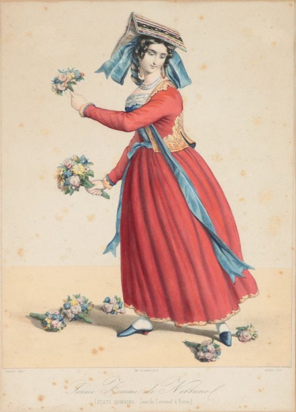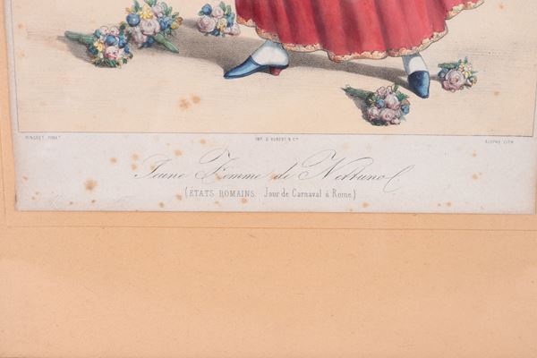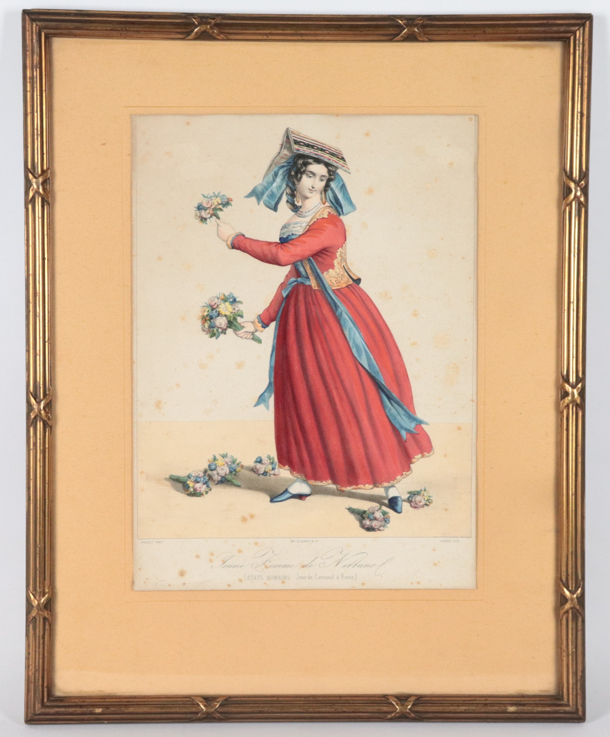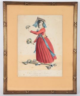 old French engraving with watercolor on papergilded wooden frame, 34 x 24 cm.