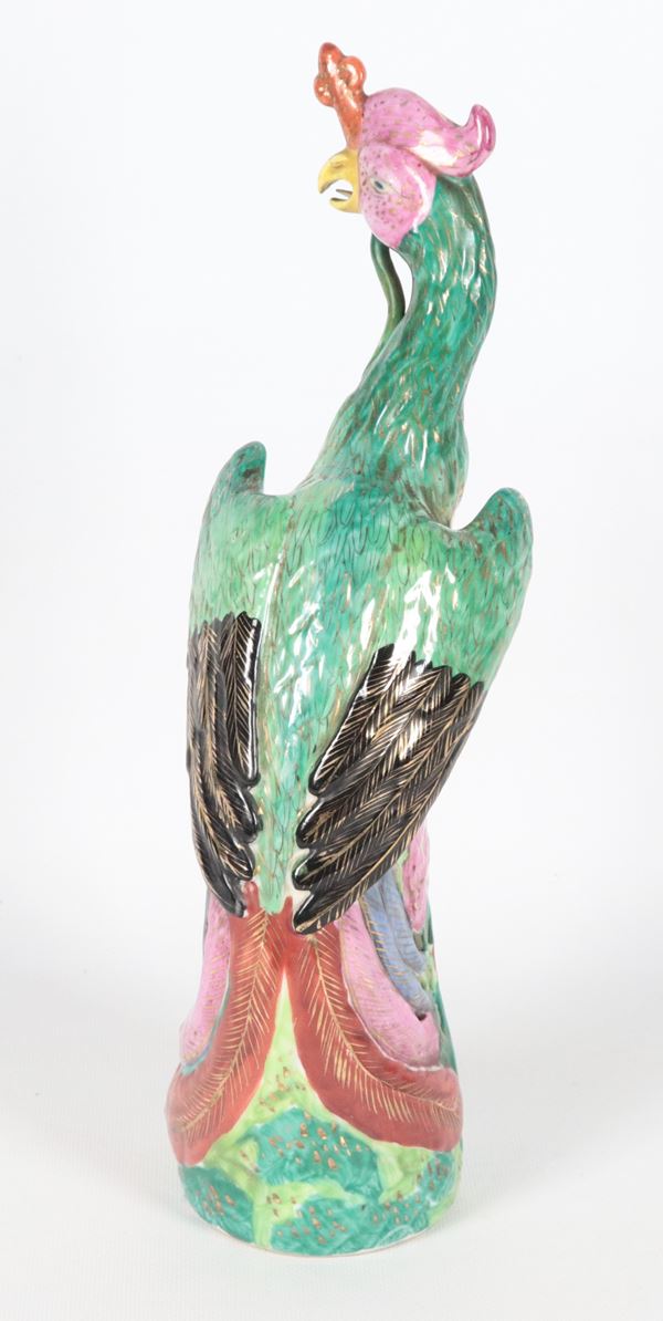 "Exotic Bird", Chinese polychrome porcelain sculpture