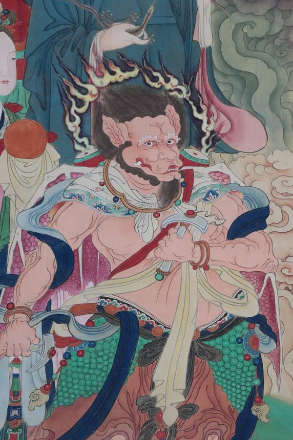 "Investiture of the Gods of the Chinese Buddhist Pantheon", a large ancient Chinese painting on natural-colored paper