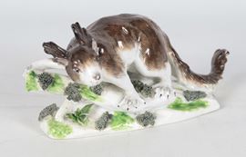 "Kangaroo", an antique small polychrome porcelain sculpture from Meissen