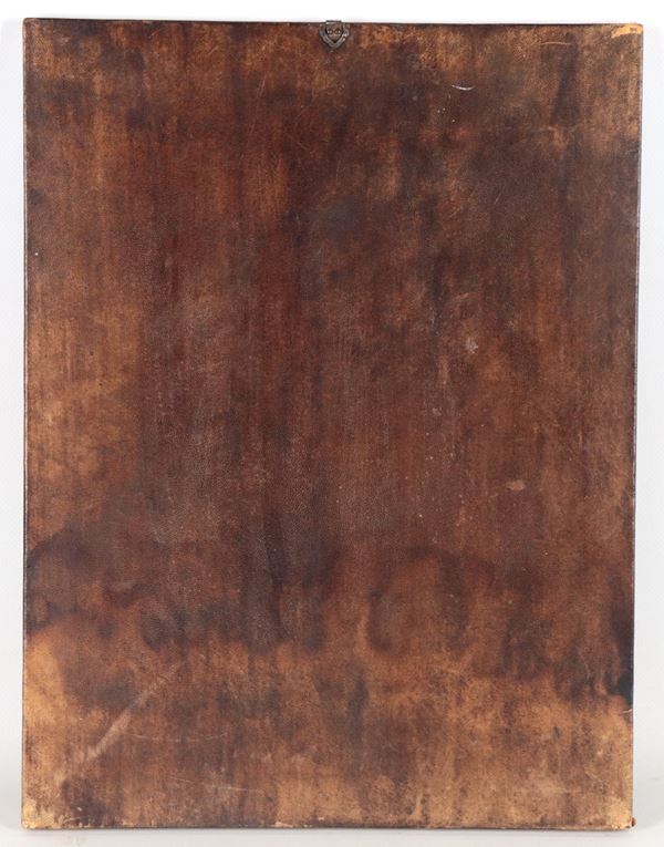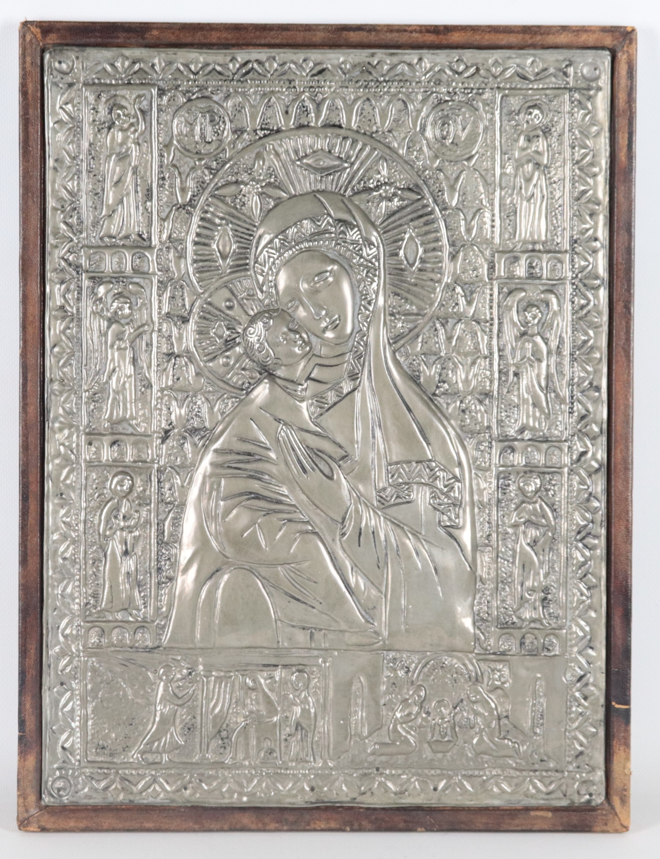 "Madonna with Child", an ancient copper plate entirely chiseled and embossed