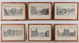 lot of six ancient small engravingsthuja root frames, 17 x 28 cm each.