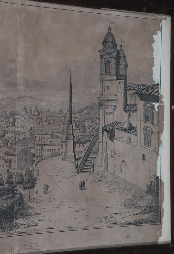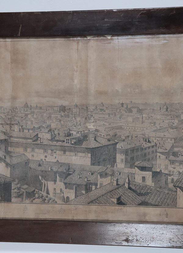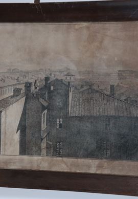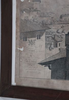 old large print on paperThe paper has some defects. Walnut frame, 42 x 228 cm.