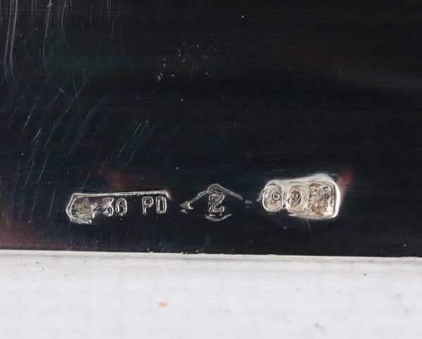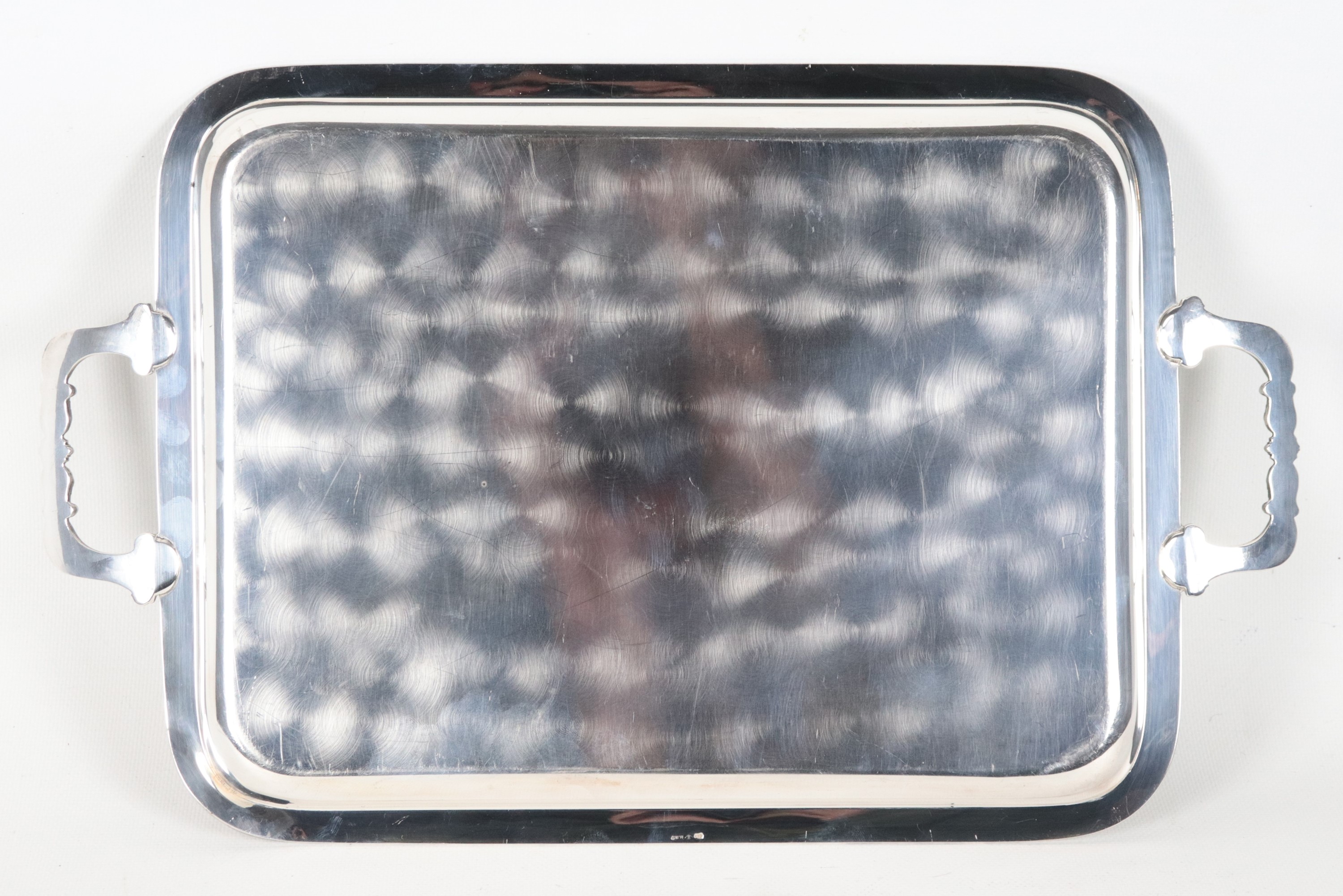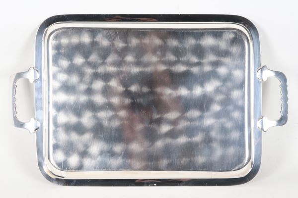 Rectangular silver tray, with handles and edge chiseled and embossed with Empire motifs, gr. 810