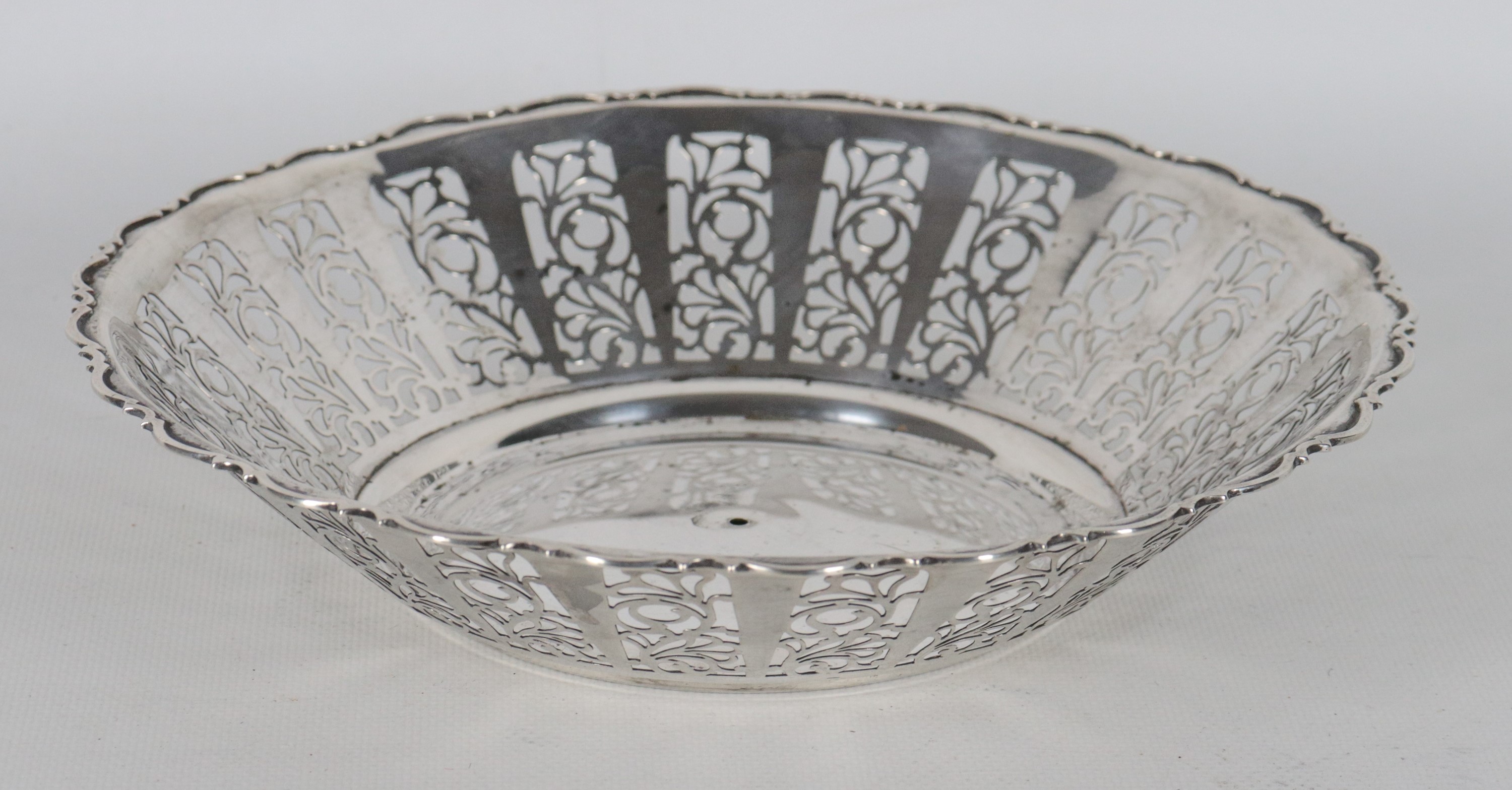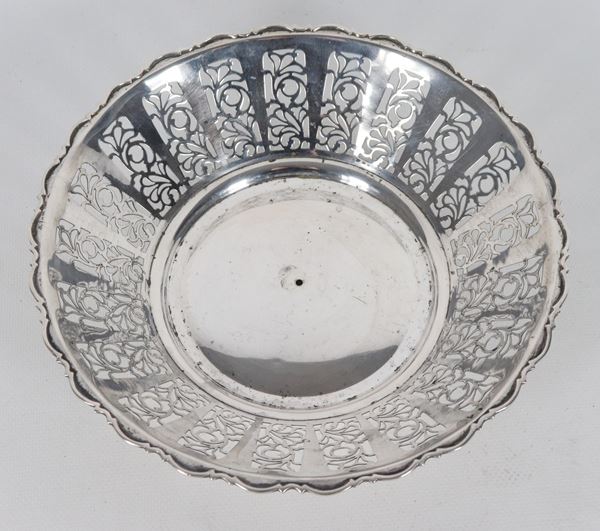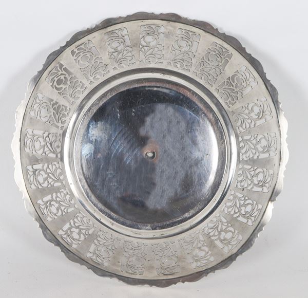 Round silver centerpiece, with curved, embossed and perforated edge, 255 g