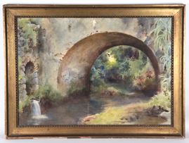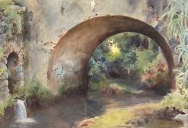 "Arch bridge with a watercourse near the Roman countryside"