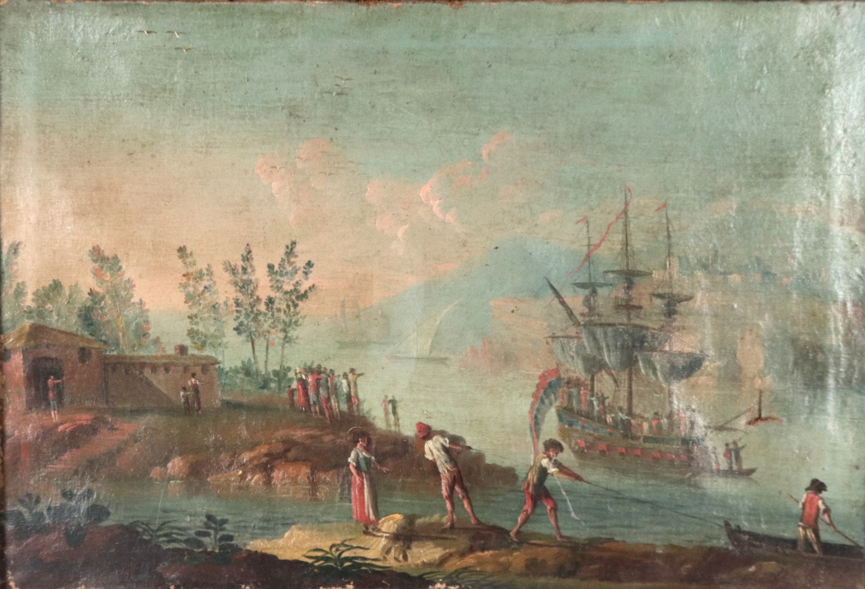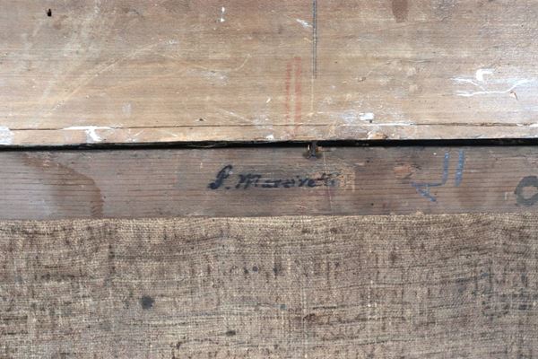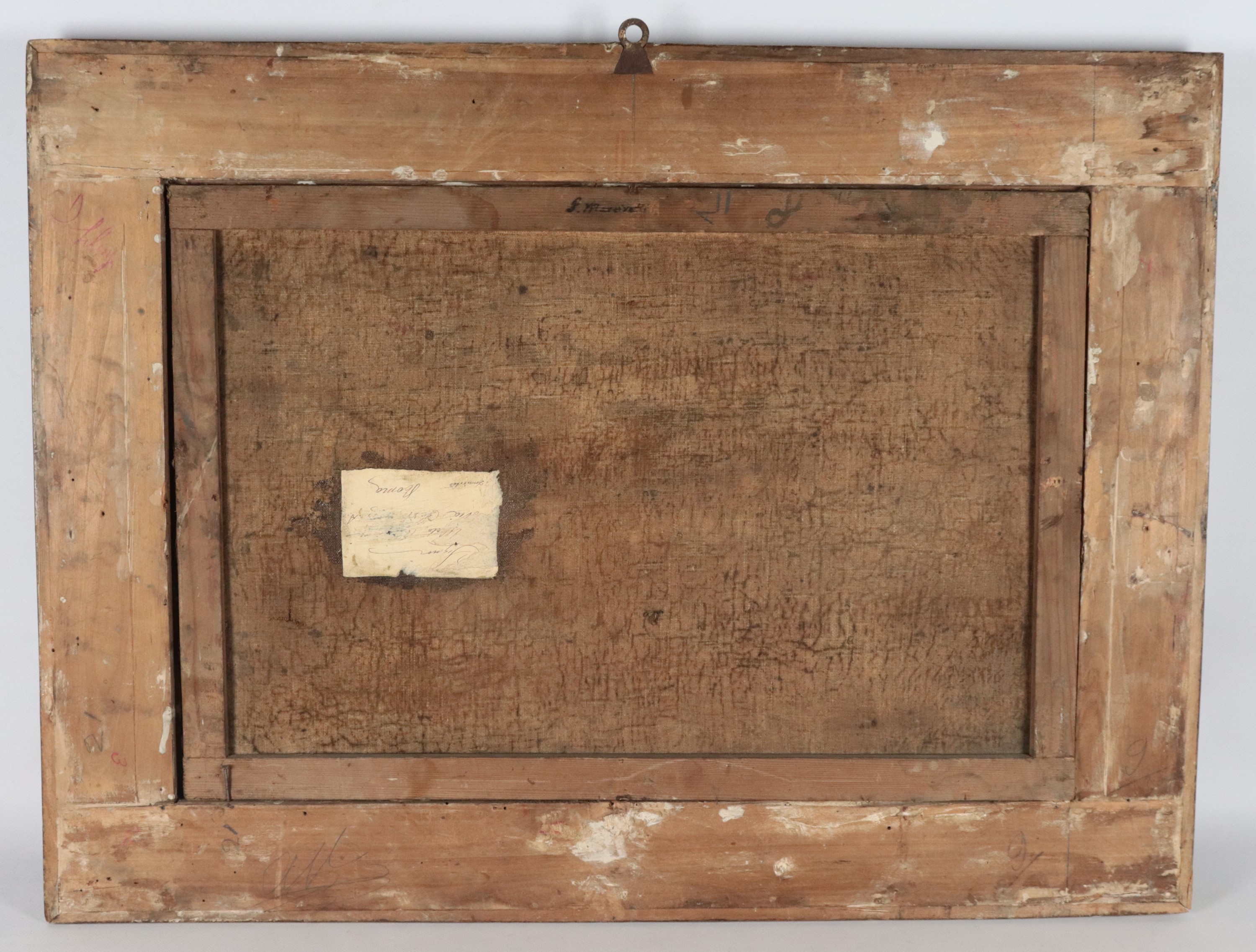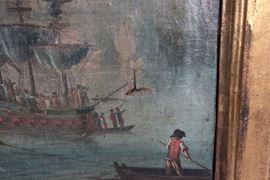 oil painting on canvasThe canvas has a defect. Antique gilded wooden frame, 45 x 65 cm.
