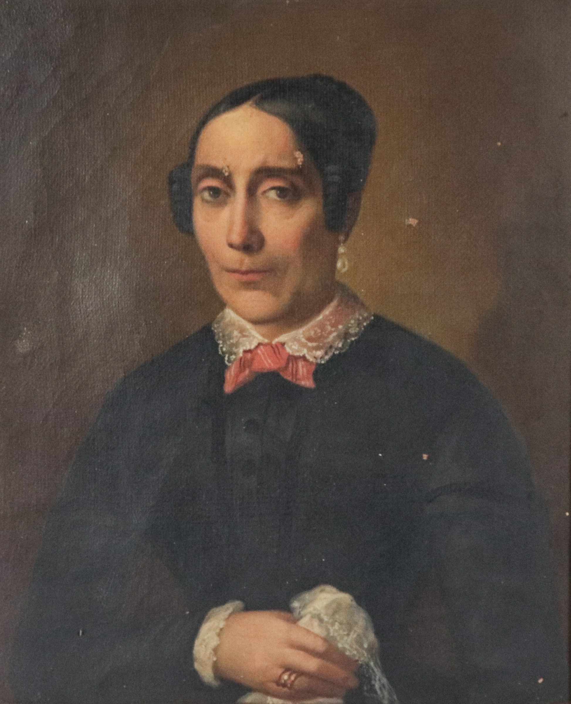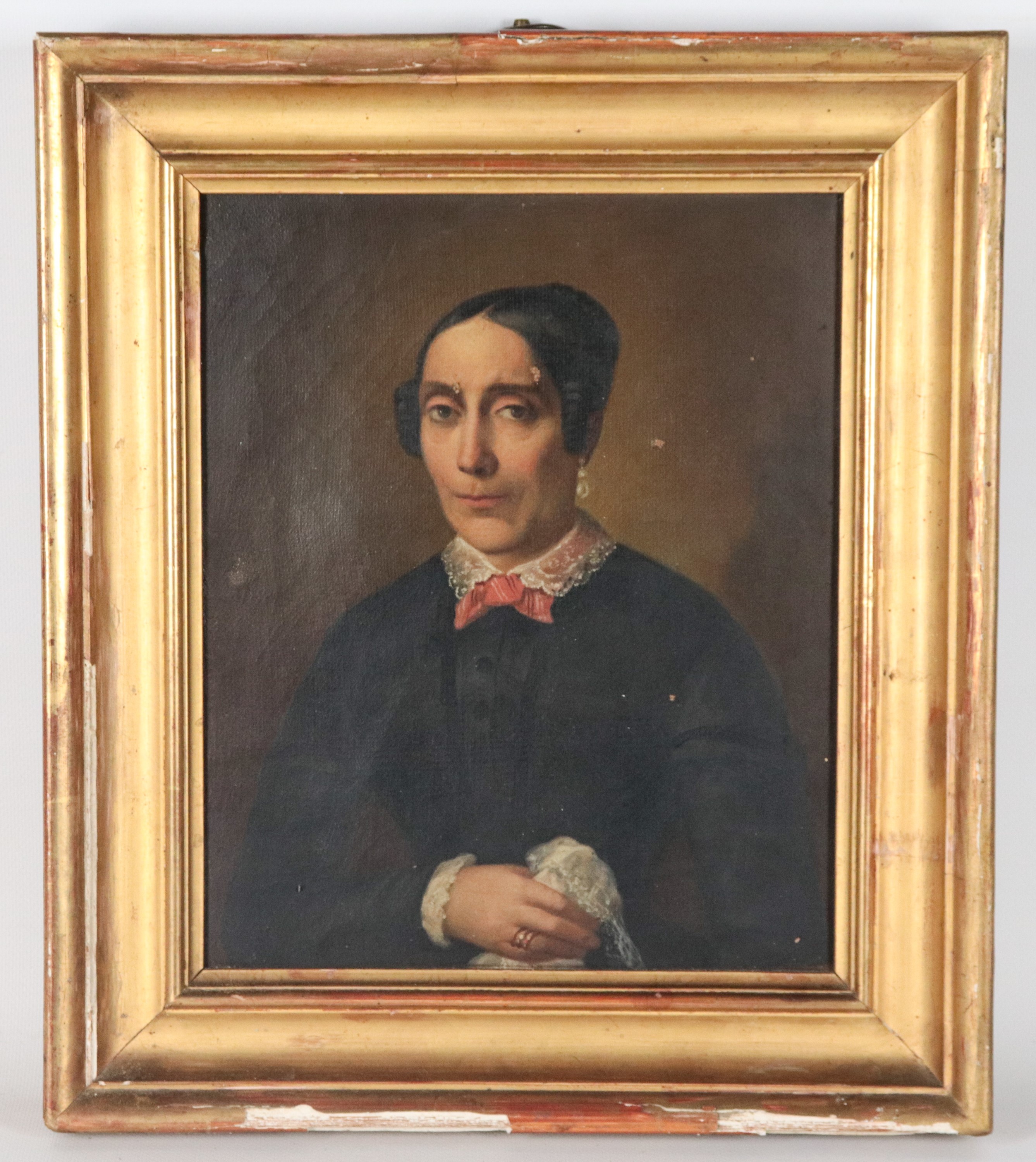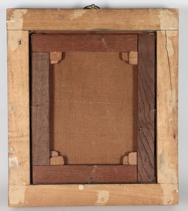 small oil painting on canvasMinor defects on the canvas. Antique gilded wooden frame from the period, 30 x 25 cm.