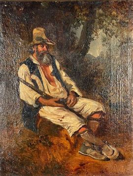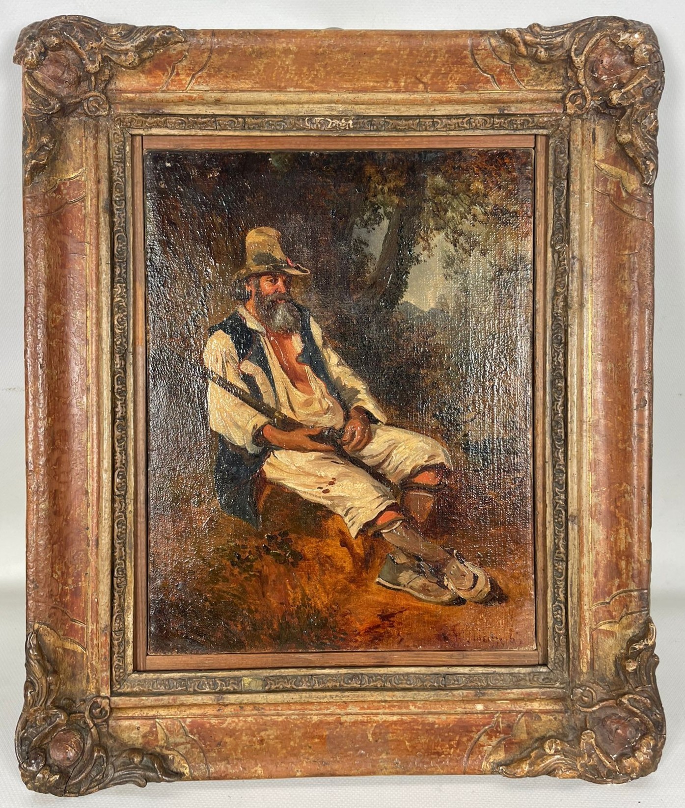 small oil painting on canvasgilded and carved wooden frame, 30 x 24 cm.