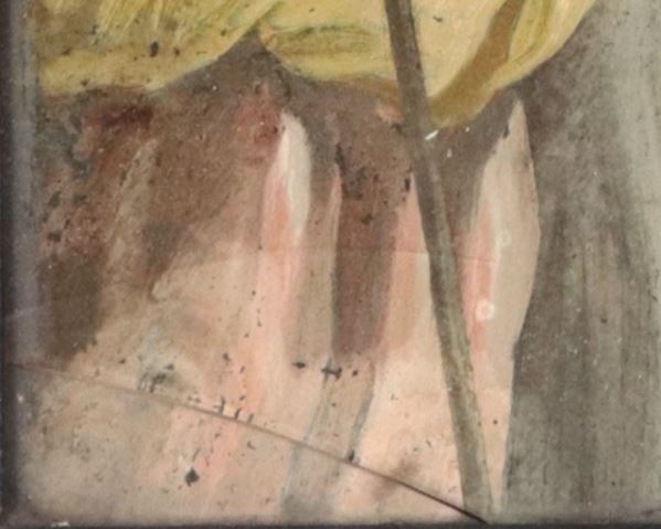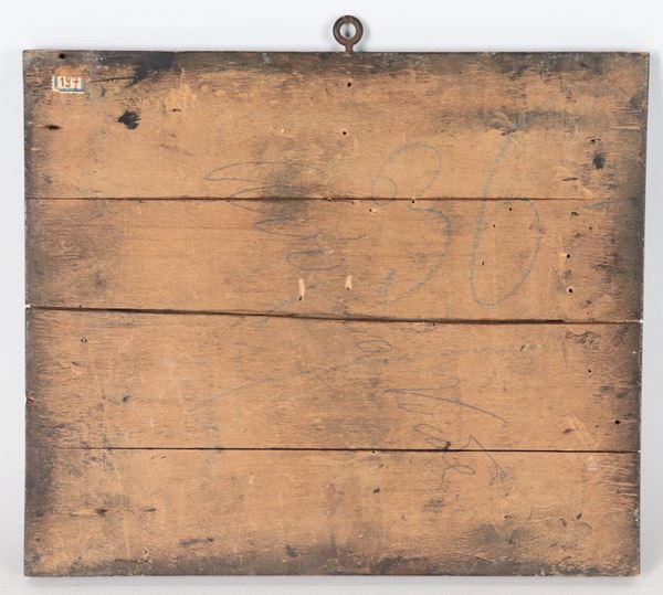small oil painting under glassSmall glass break at the bottom left. Antique ebonized wood frame from the period, 18 x 22.5 cm.