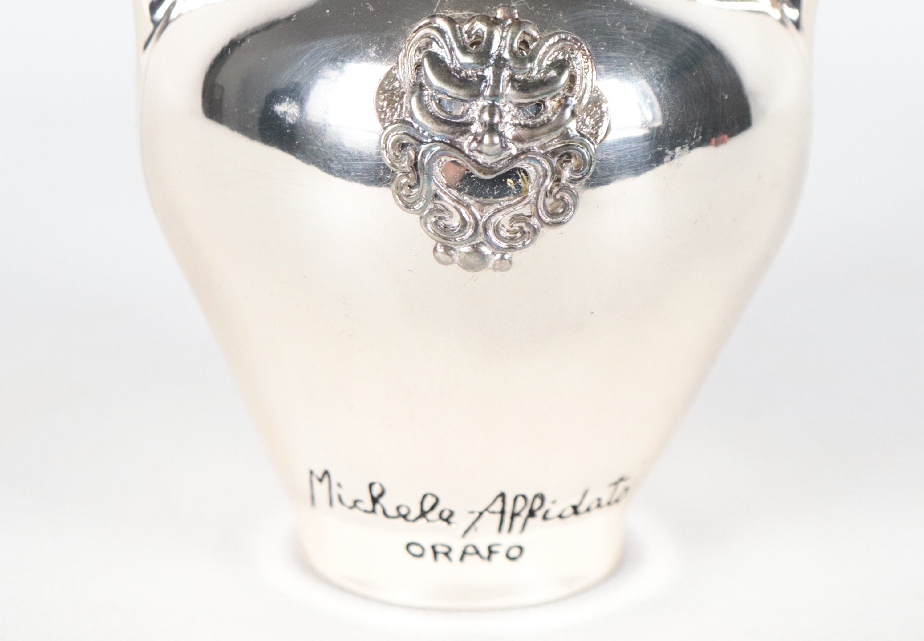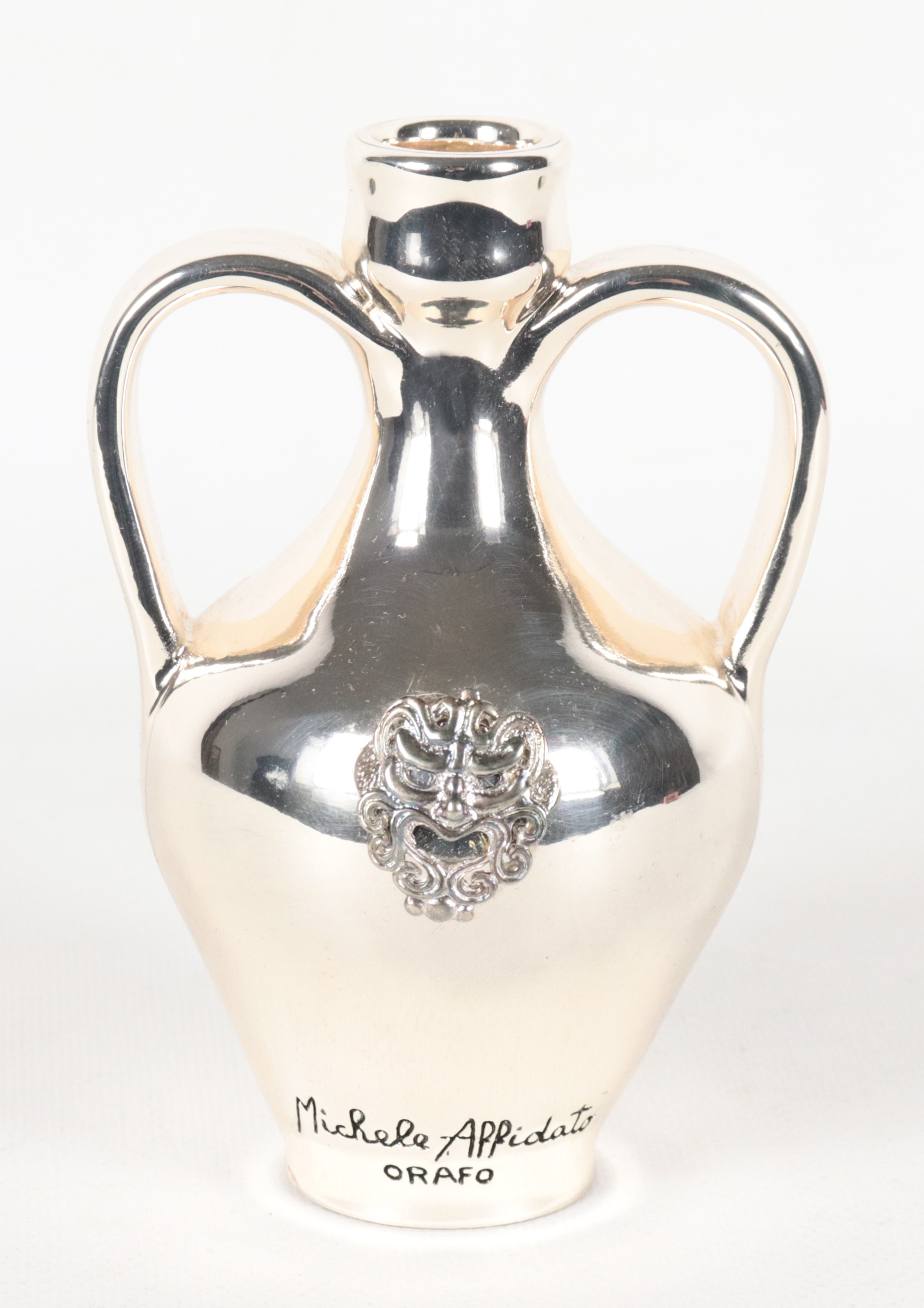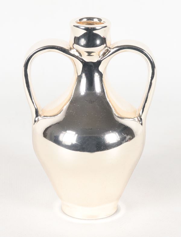 Small amphora vase by the goldsmith Michele Affidato, in galvanized marble dust composite coated in silver, with application of a 925 silver [..]