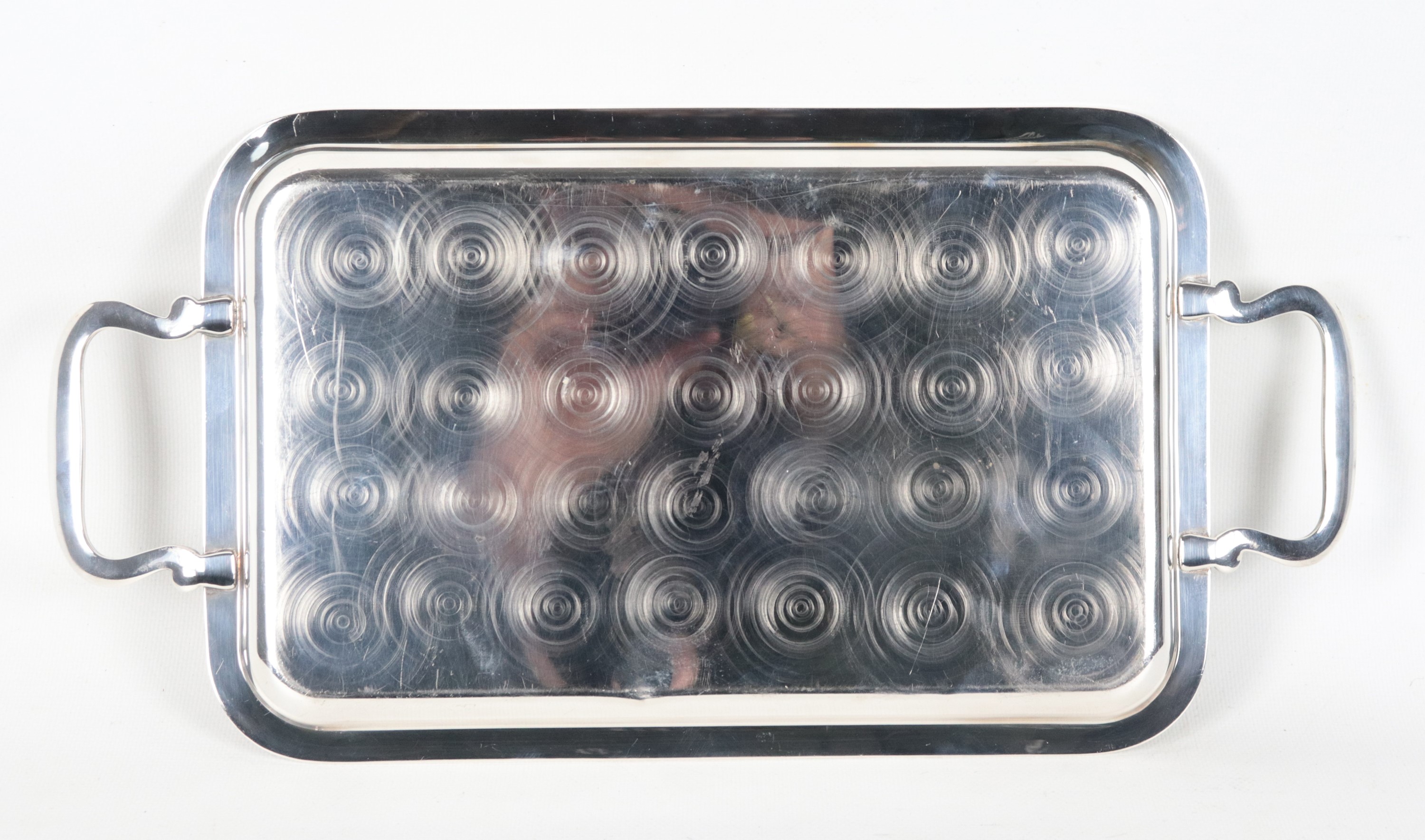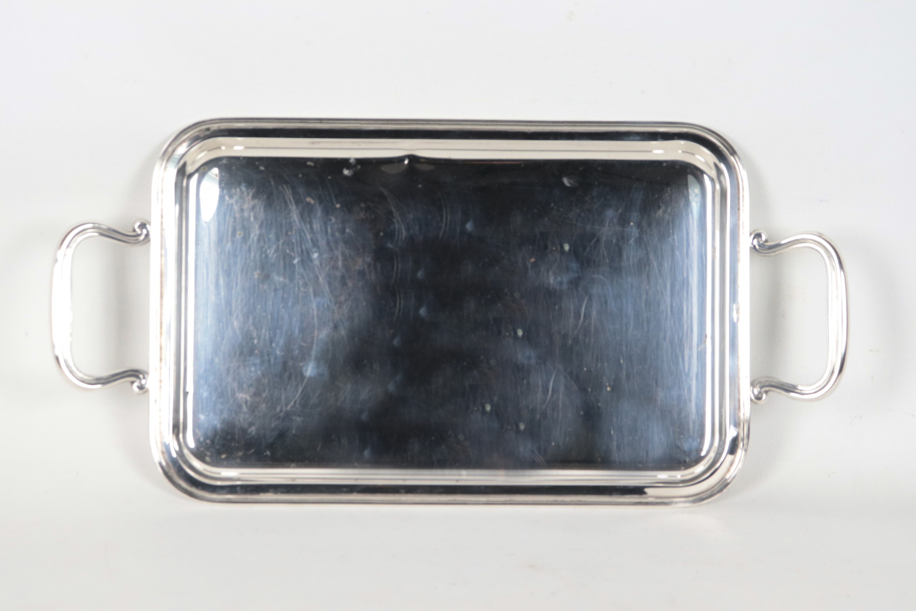Small rectangular silver tray with two handles, 700g