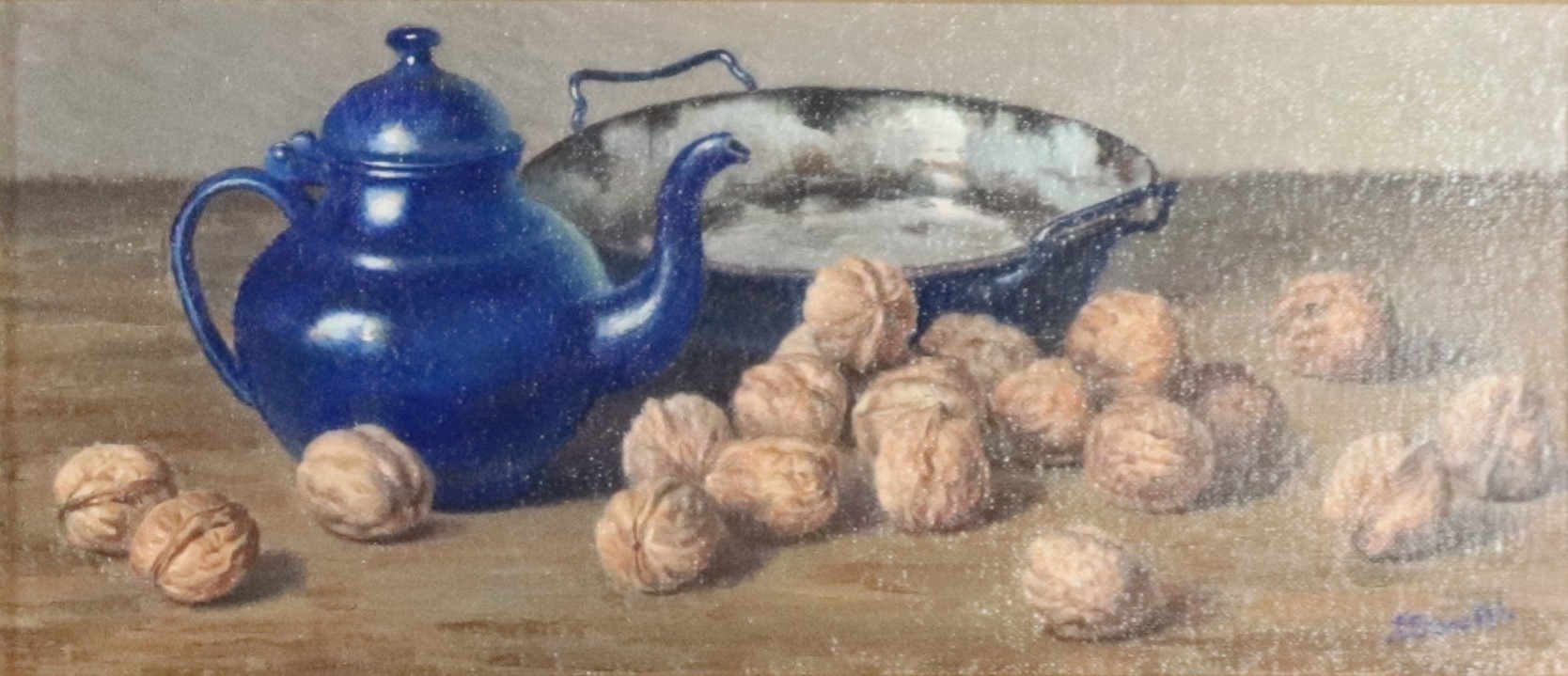 Signed. "Still Lifes of Walnuts and Oranges with a Basket"