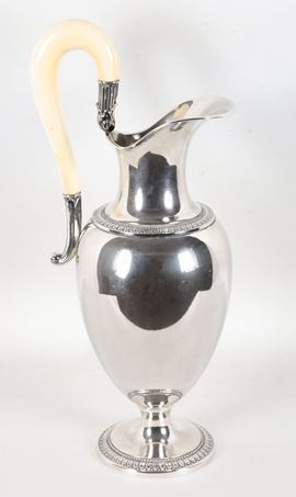 Water carafe in chiseled and embossed silver with Empire motifs, 730 g