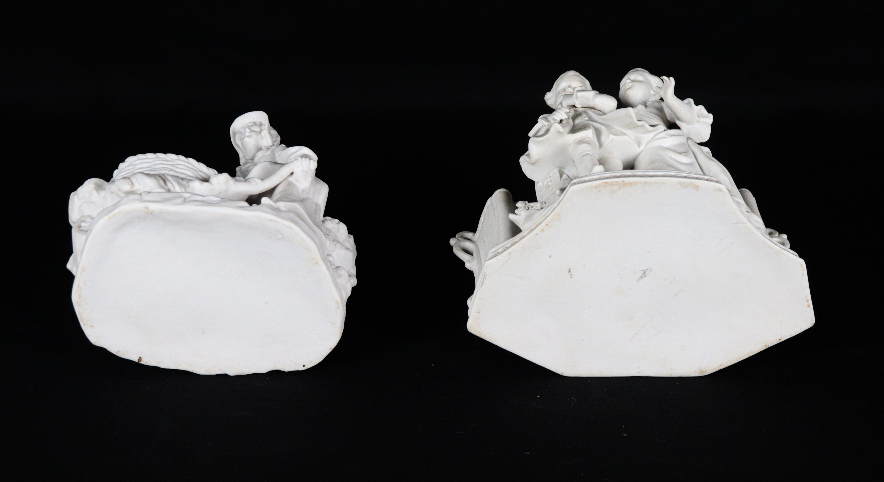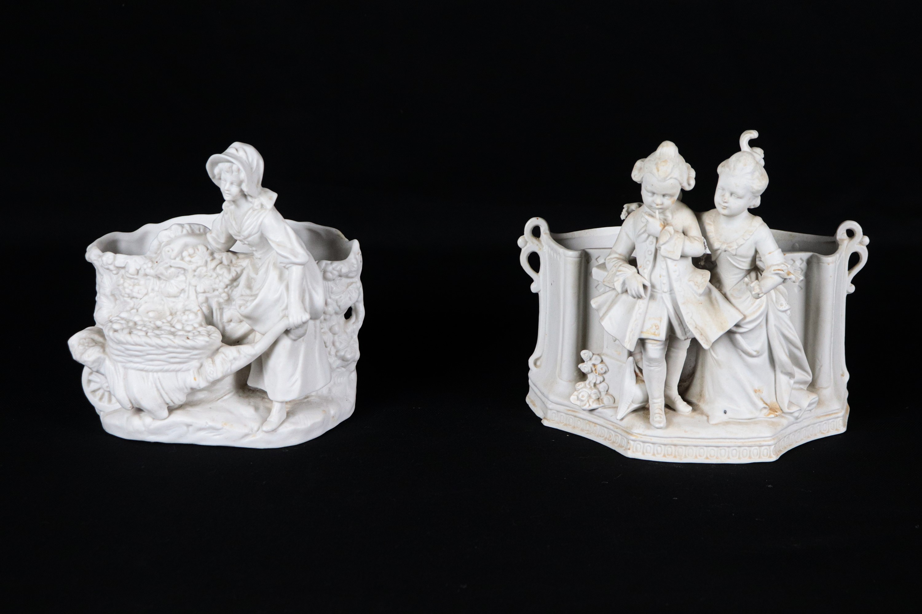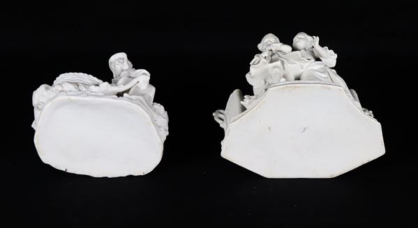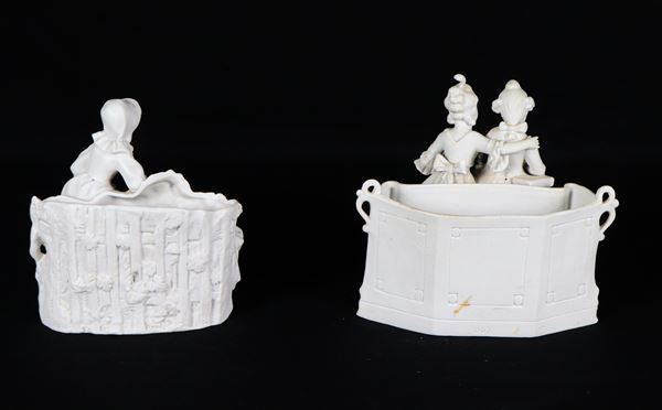 "Allegorie di bambini", lotto di due piccole fioriere in porcellana biscuit
