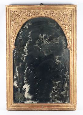 Antique oval frame, in gilded wood and carved with floral scroll motifs