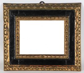 Antique small frame in ebonized, gilded and carved wood